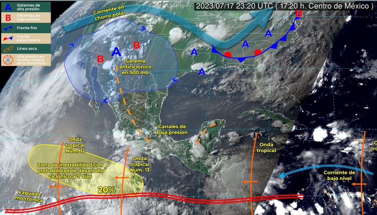 La Unidad Estatal de Protección Civil (UEPC) del Gobierno del Estado de Colima, mantiene en vigilancia la onda tropical número 13, que se desplazará sobre el occidente de la República Mexicana, en interacción con un canal de baja presión, lo cual provocará lluvias puntuales intensas en Jalisco y muy fuertes en Colima, Nayarit, Michoacán y Guerrero.