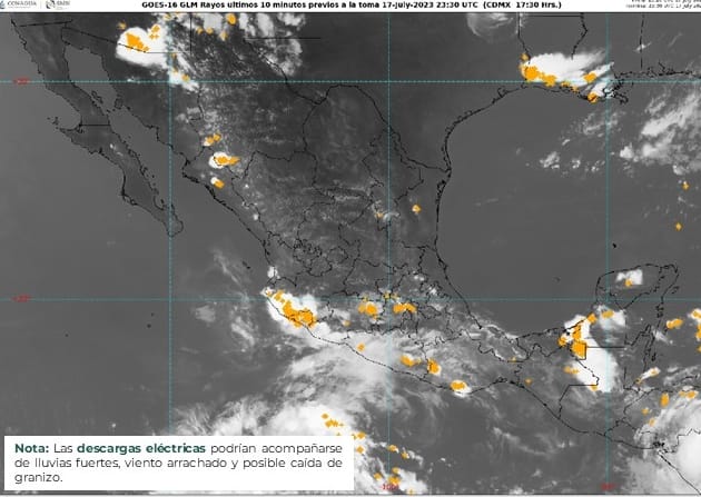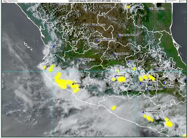 El Servicio Meteorológico Nacional (SMN) prevé que durante las próximas horas, en algunos municipios del estado de Colima se podrían registrar lluvias puntuales fuertes de hasta 50 milímetros, lo mismo para Sonora, Chihuahua, Sinaloa, Nayarit, Jalisco, Michoacán, Guerrero, Chiapas, Tabasco, Campeche y Yucatán.