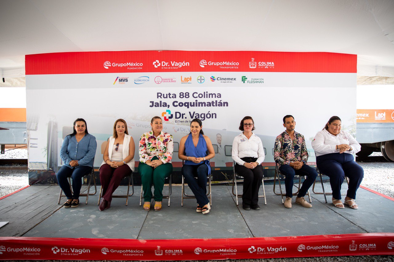 La gobernadora Indira Vizcaíno Silva, encabezó el inicio de servicios médicos gratuitos del Dr. Vagón, en la comunidad de Jala Coquimatlán, donde permanecerá hasta el 5 de agosto; ahí, la mandataria agradeció el compromiso y empatía que Fundación Grupo México ha tenido con el estado de Colima, pues dijo que es la primera vez que se tiene la presencia de El Tren de la Salud por un segundo año consecutivo.