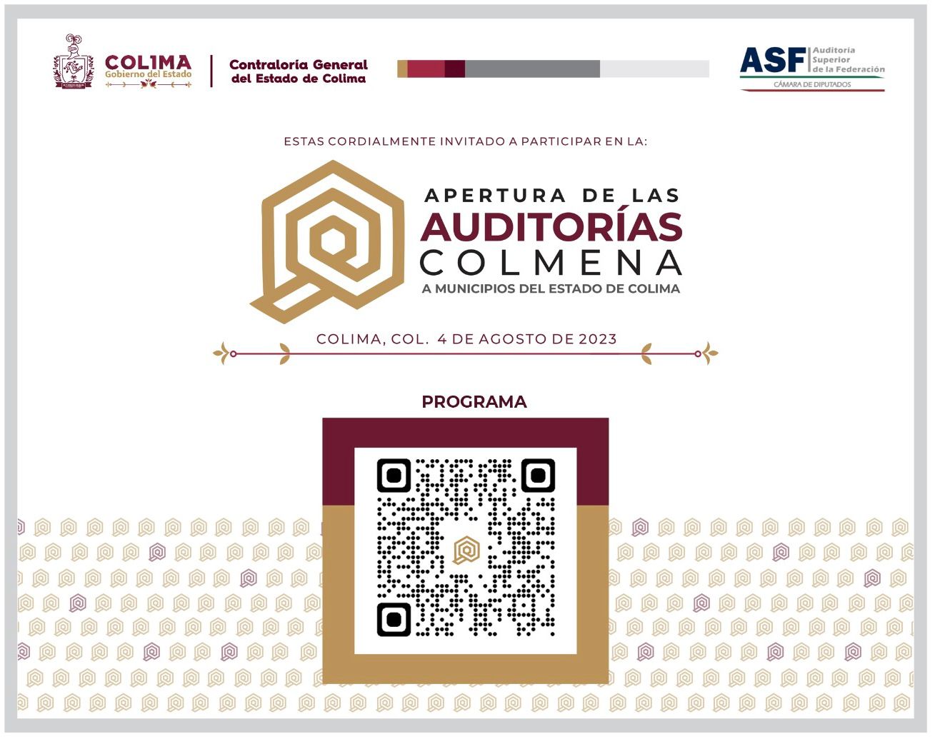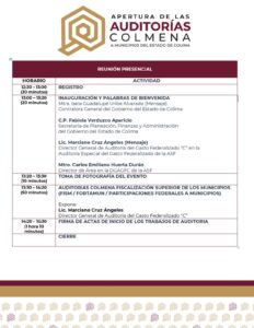 La Contraloría General del Estado de Colima, que encabeza Isela Guadalupe Uribe Alvarado, estará coadyuvando con la Auditoría Superior de la Federación (ASF) para la realización de la fiscalización de la Cuenta Pública 2022 a nueve de diez municipios, el evento se llevará a cabo este viernes 4 de agosto a partir de las 13 horas en el Centro de Convenciones del Complejo Administrativo del municipio capitalino, con la apertura de las Auditorías Colmena.