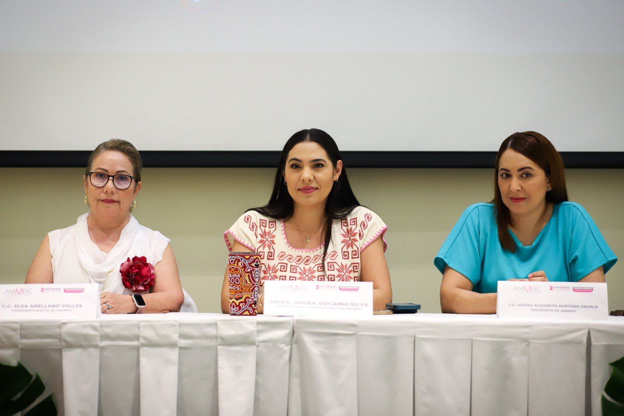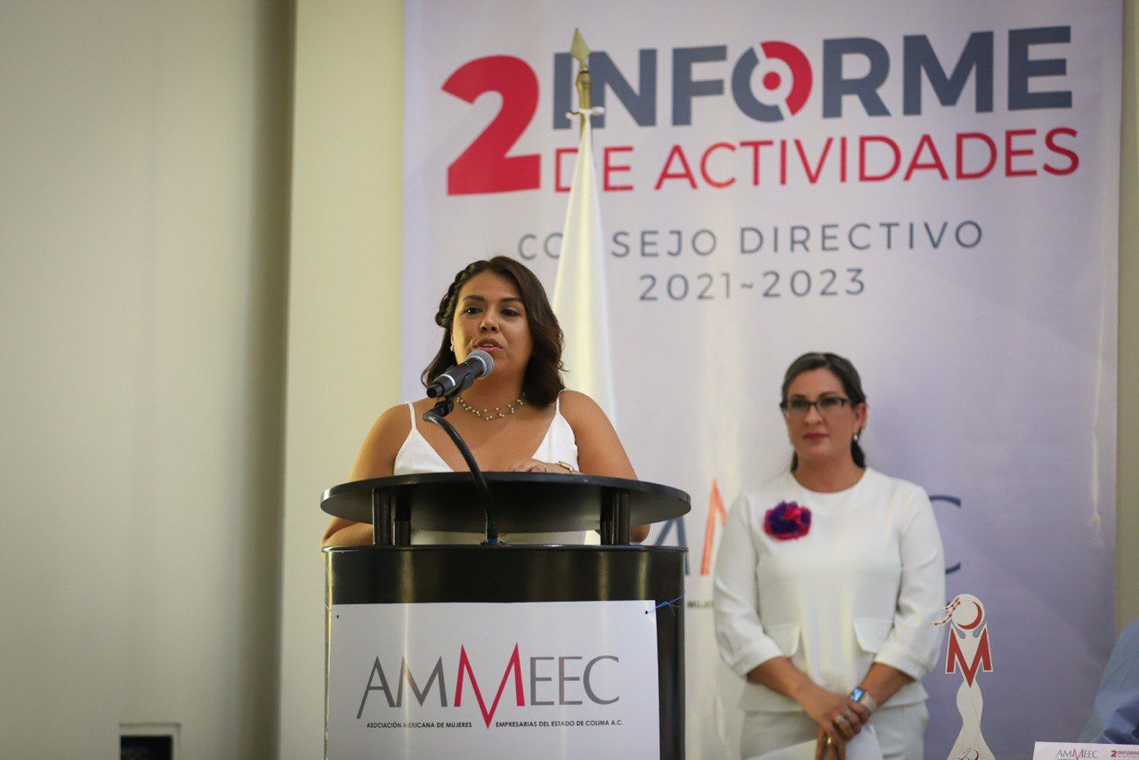 La gobernadora Indira Vizcaíno Silva asistió este jueves al segundo informe de actividades de la Asociación Mexicana de Mujeres Empresarias del Estado de Colima (AMMEEC) y toma de protesta del nuevo Consejo Directivo (periodo 2023-2025); reiteró su compromiso de impulsar a las mujeres en todos los ámbitos, ” nos hace mucho sentido y mucha ilusión impulsar el desarrollo de las mujeres empresarias”.