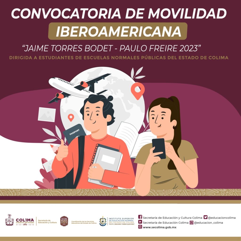 La Secretaría de Educación Pública (SEP), a través de la Secretaría de Educación y Cultura del Gobierno del Estado de Colima, en coordinación con el Instituto Superior de Educación Normal del Estado de Colima (Isenco) “Prof. Gregorio Torres Quintero”, publicaron en el portal web de la dependencia educativa la convocatoria para la movilidad iberoamericana “Jaime Torres Bodet – Paulo Freire 2023”.