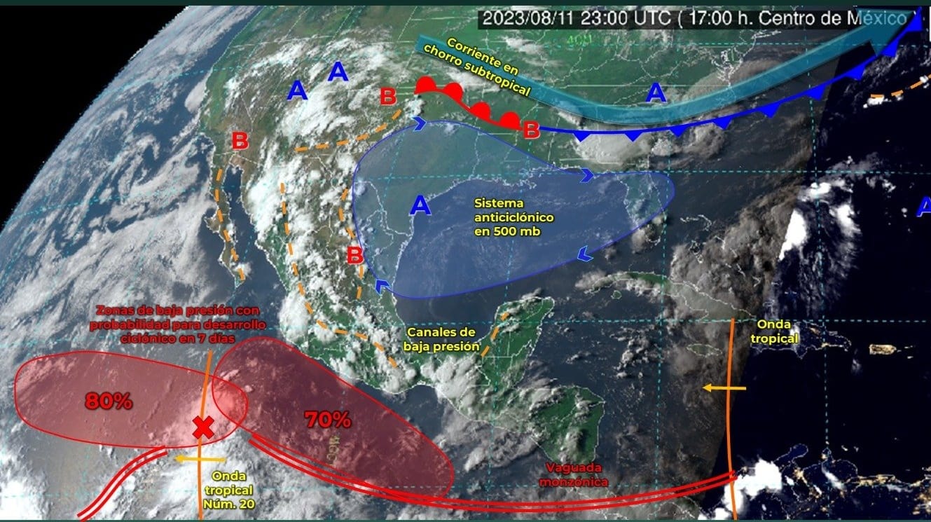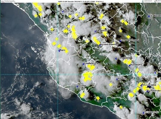 La Unidad Estatal de Protección Civil (UEPC) del Gobierno del Estado de Colima exhorta a la población a mantenerse informada de las condiciones climáticas, pues durante esta noche y madrugada del sábado 12 de agosto, canales de baja presión en el interior del país, sureste mexicano y Península de Yucatán, ocasionarán lluvias puntuales fuertes en Colima, Zacatecas, Aguascalientes, Nayarit, Michoacán, Guanajuato, Estado de México, Ciudad de México, Tlaxcala y Morelos.