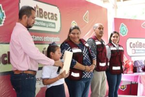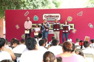 Al hacer la entrega en representación de la gobernadora Indira Vizcaíno Silva, la encargada del despacho de la Secretaría de Bienestar, Inclusión Social y Mujeres, Zalia María Gutiérrez Verduzco, recordó que el Gobierno de Colima trabaja para garantizar que todas y todos los estudiantes tengan las herramientas necesarias para continuar su educación y también para apoyar la economía familiar, y que por ello se creó ColiBecas.