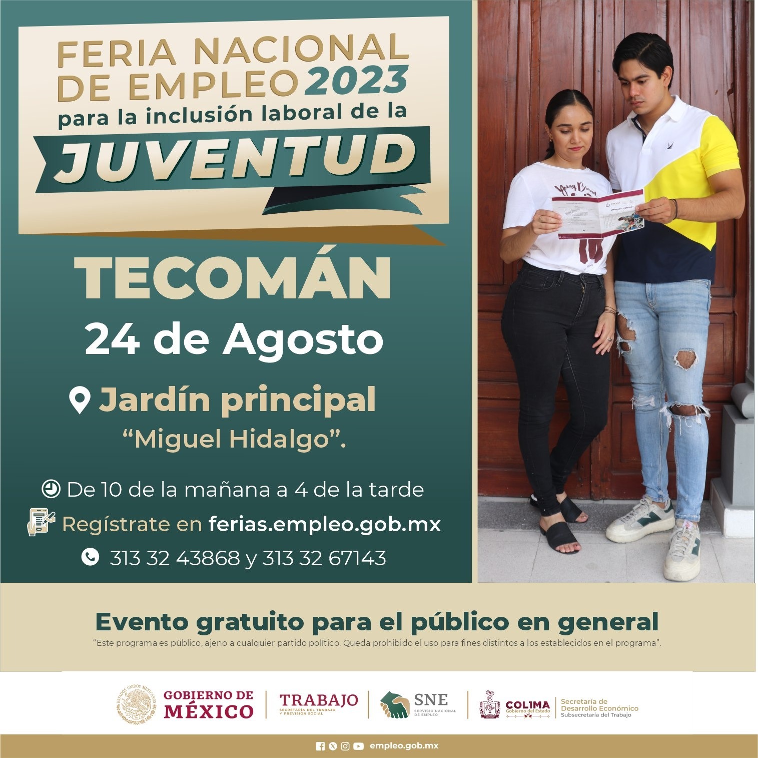 Con la finalidad de contribuir a la reactivación económica de los diferentes sectores de la entidad y mejorar la calidad de vida de las familias, el Gobierno del Estado de Colima, a través de la Subsecretaría del Trabajo, realizará este jueves 24 de agosto la Feria Nacional de Empleo para la Inclusión Laboral de la Juventud Tecomán 2023.