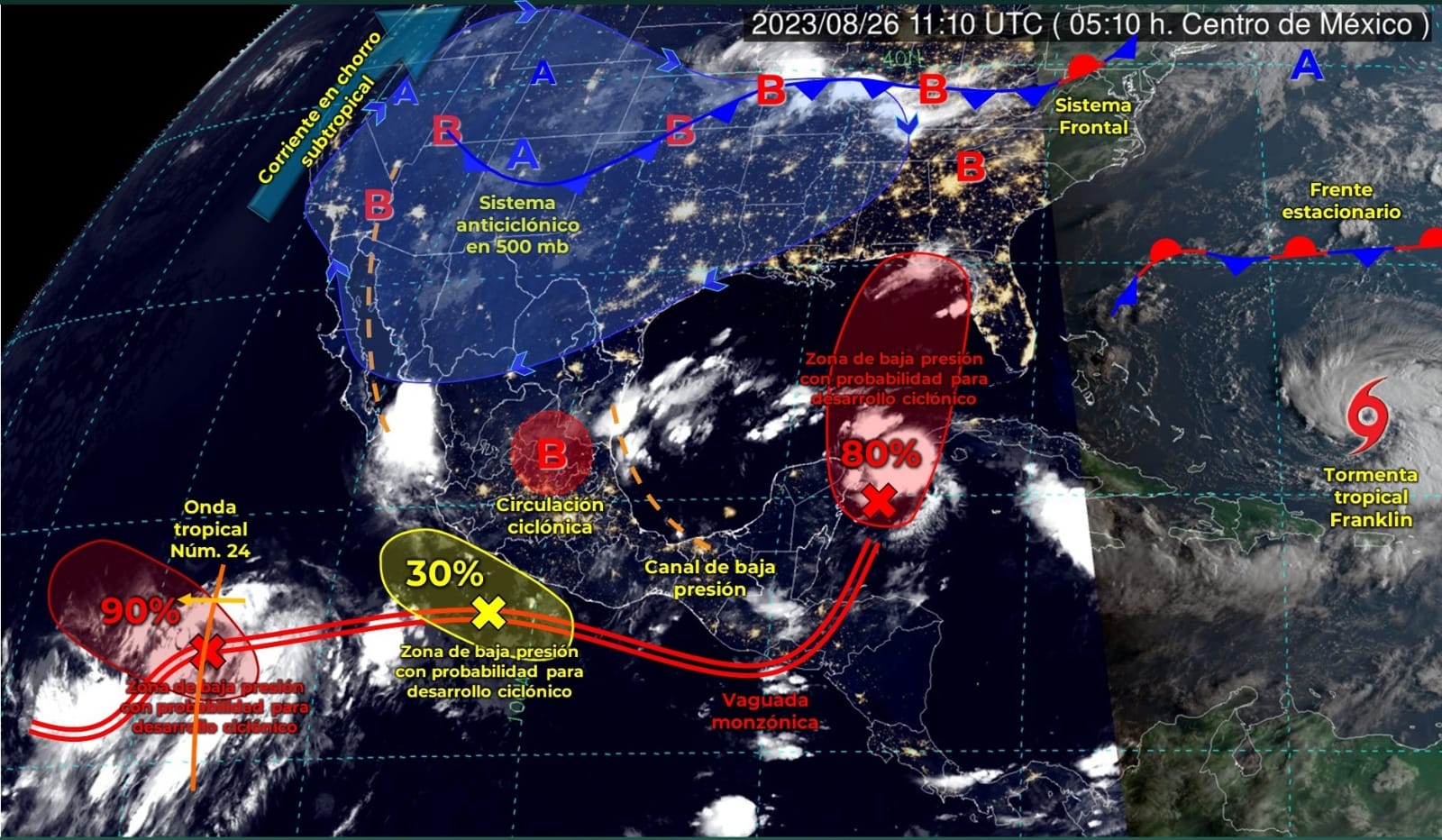 La Unidad Estatal de Protección Civil (UEPC) del Gobierno del Estado de Colima mantiene en vigilancia una zona de baja presión con probabilidad de desarrollo ciclónico en el Océano Pacífico, que se desplazará frente a las costas de Guerrero y Michoacán, su amplia circulación ocasionará lluvias muy fuertes a puntuales intensas en el occidente y sur de México, incluido el territorio colimense.