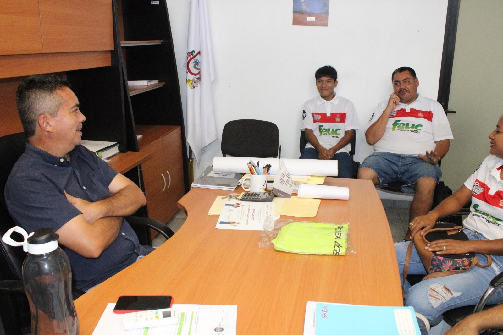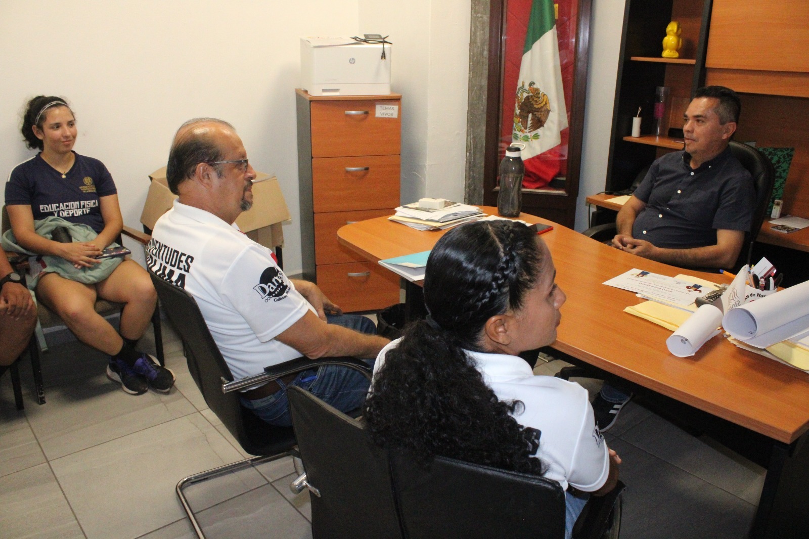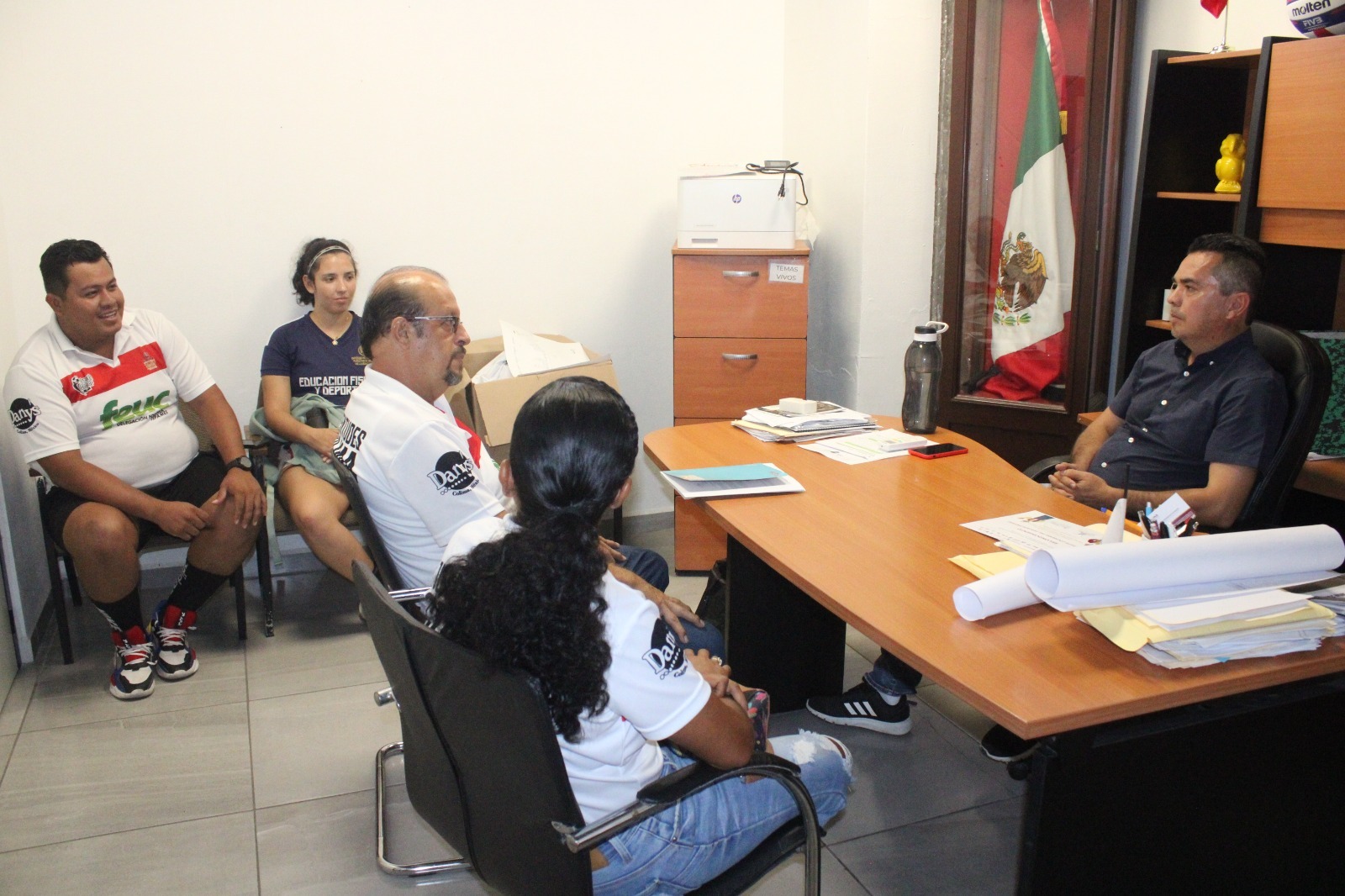 Durante la visita realizada al titular del Incode, también estuvieron el delegado general, Jorge Morfín, de Tecomán; el entrenador de la selección varonil, Felipe Espinosa y la entrenadora de la selección femenil, Clara Luna Jaimes, de Manzanillo, quienes agradecieron el apoyo e impulso recibido por parte del Gobierno de Colima, a través del Incode.
