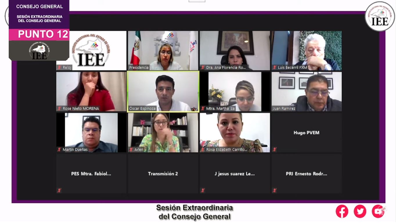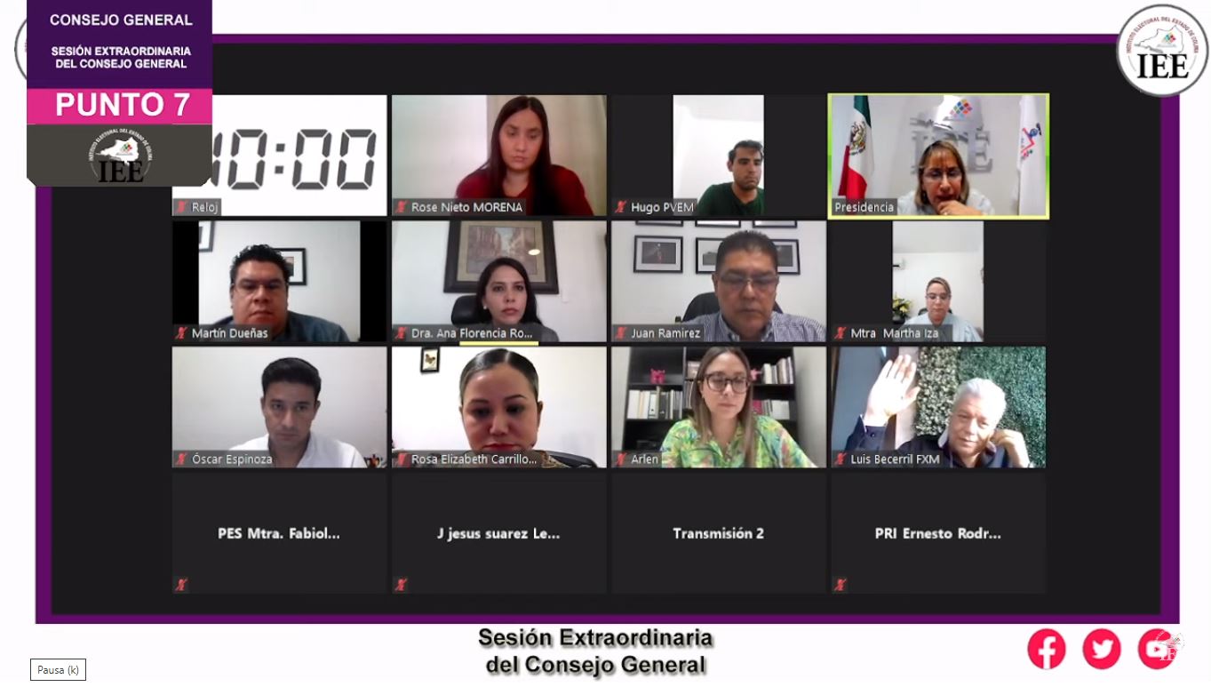 En la misma sesión de este jueves, se aprobaron la Resolución del Consejo General relativa a la verificación trianual de los padrones de personas afiliadas a los Partidos Políticos Estatales con registro en la entidad; y el desahogo de la consulta que formuló el Partido Verde Ecologista de México.