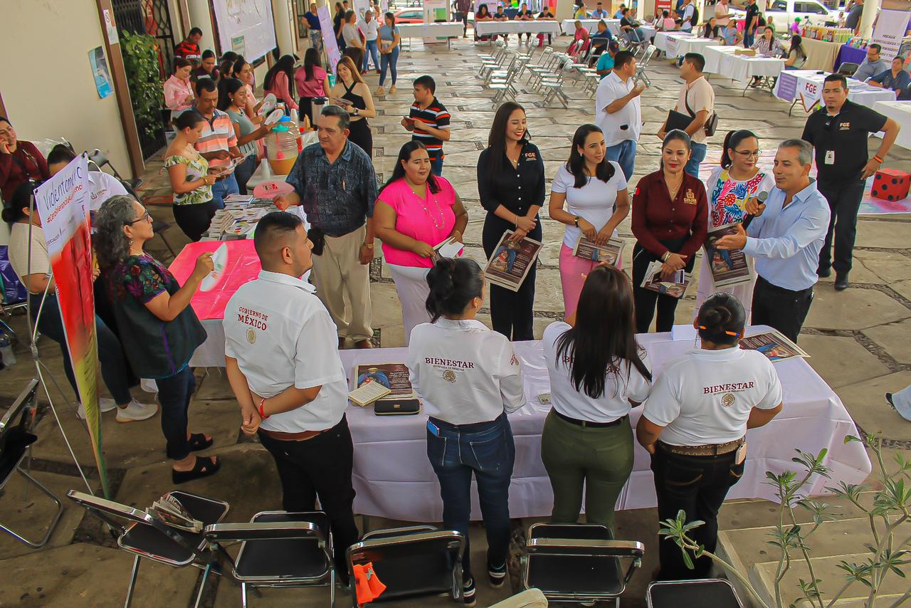 A esta Feria se integraron también la Secretaría de Seguridad Pública (SSP), el Centro Estatal para la Prevención y Atención a la Violencia Familiar (Cepavi), Fiscalía General del Estado (FGE) y la Procuraduría de Protección de Niñas, Niños y Adolescentes y el Centro Estatal de Prevención Social del Delito, con la intención de acercar programas sociales y mecanismos institucionales a las mujeres que se encuentran fuera de la capital del estado y que tienen mayor dificultad para acceder a oficinas públicas y al funcionariado especializado en atender casos de violencia.