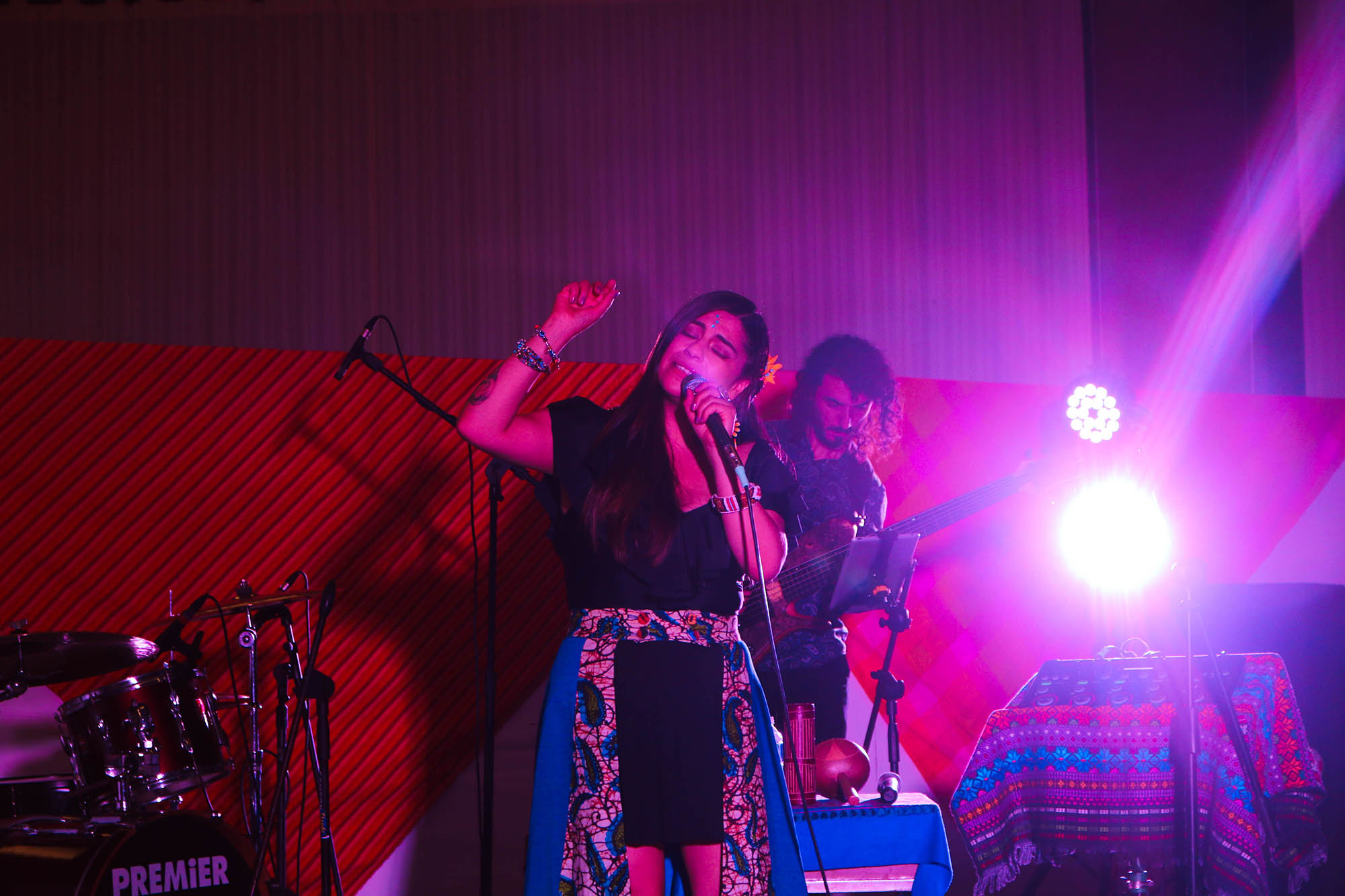 Para concluir el tercer día de actividad, se celebró un concierto muy especial que protagonizó Urpi Barco (voz) en compañía de su quinteto, integrado por Nicolás Torres (Bajo eléctrico), Kike Narváez (Batería), Felipe Rey (Piano) y César Medina (Saxofón). Ellos y ella invitaron a la audiencia a viajar, cantar y bailar con sonoridades que mezclaron elementos del jazz, las músicas del mundo y la exploración vocal. El repertorio fue de composiciones originales, así como algunas canciones tradicionales colombianas.
