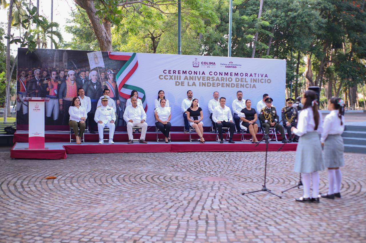 Al encabezar en el Parque Hidalgo la ceremonia del 213 aniversario del inicio de la Independencia de México, la gobernadora Indira Vizcaíno Silva invitó a las y los colimenses a la unidad; “nuestra patria y nuestro estado necesita de todas y de todos, pero nos necesitan unidas y unidos, con el objetivo de superar los diferentes retos que se presentan en el día a día, entre ellos la construcción de paz, expresó.