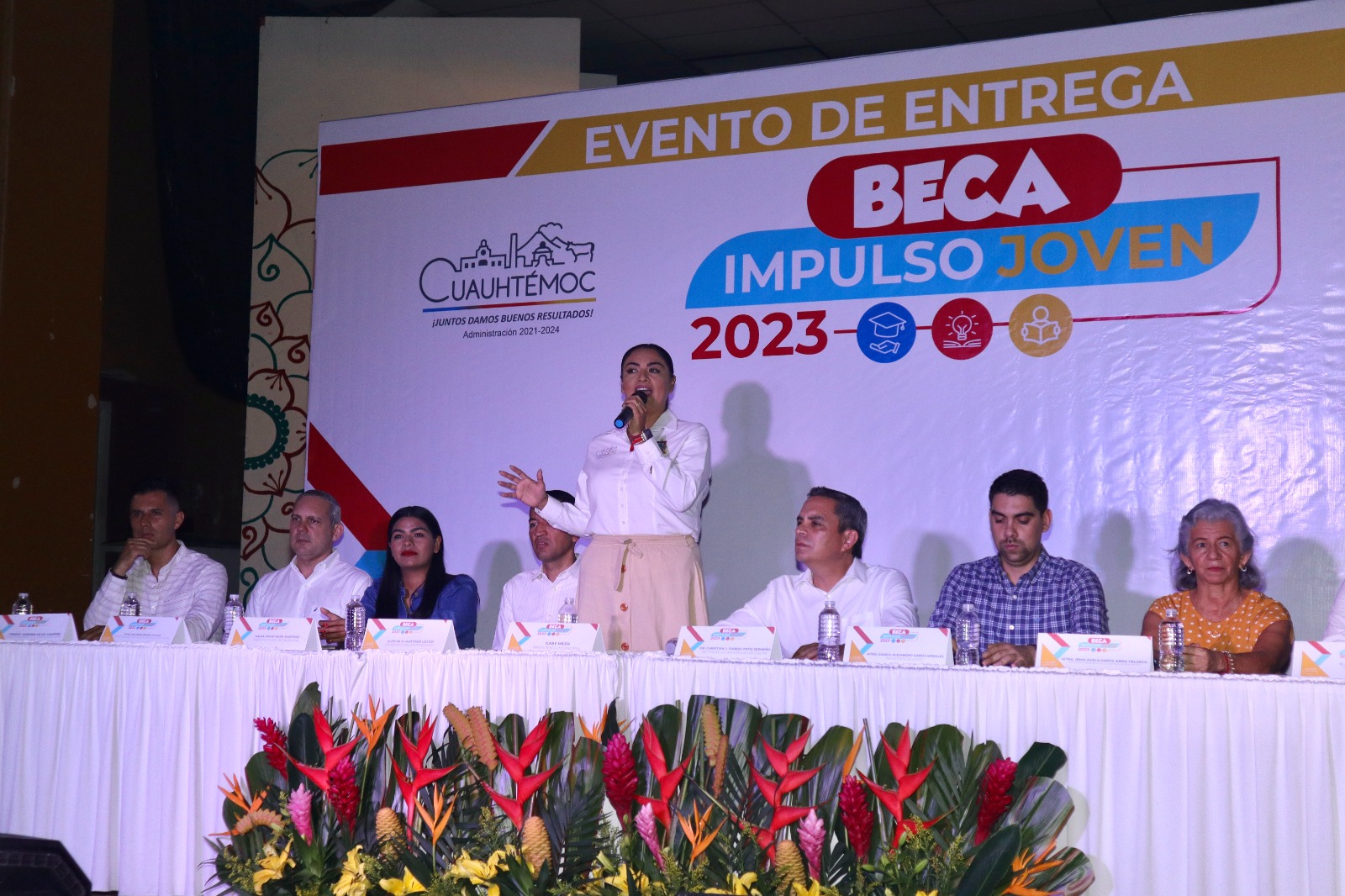 La presidenta municipal de Cuauhtémoc, Gabriela Mejía Martínez, entregó 400 becas a estudiantes de primer ingreso a bachillerato y permanencia en nivel superior, como parte de la segunda edición del programa denominado Beca Impulso Joven, que apoya a estudiantes del municipio.