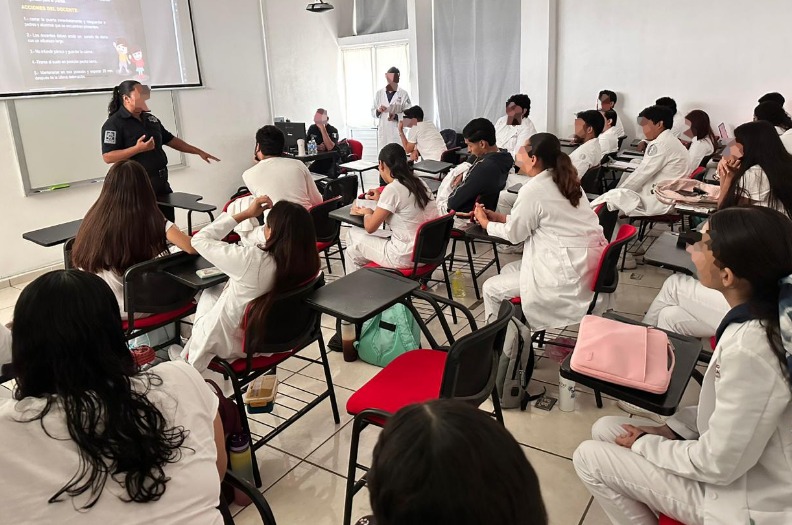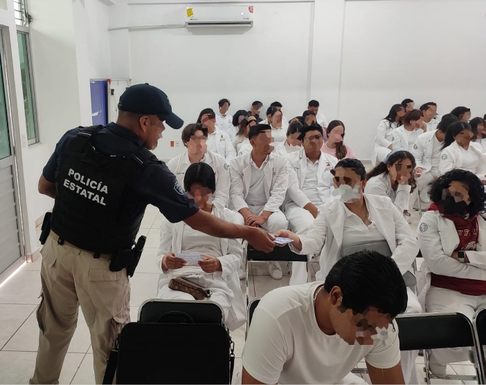 En seguimiento a las estrategias implementadas por la Secretaría de Seguridad Pública (SSP) del Gobierno del Estado de Colima, el director general de Vinculación Social y Prevención del Delito, Andrés Trujillo Fajardo; acompañado de la Coordinación de la Policía de Proximidad Social, acudió este lunes a la Universidad José Martí, para realizar diversas actividades preventivas, entre las cuales impartieron el tema Protocolo de alto impacto, dirigido a estudiantes de las licenciaturas de Medicina y Fisioterapia.