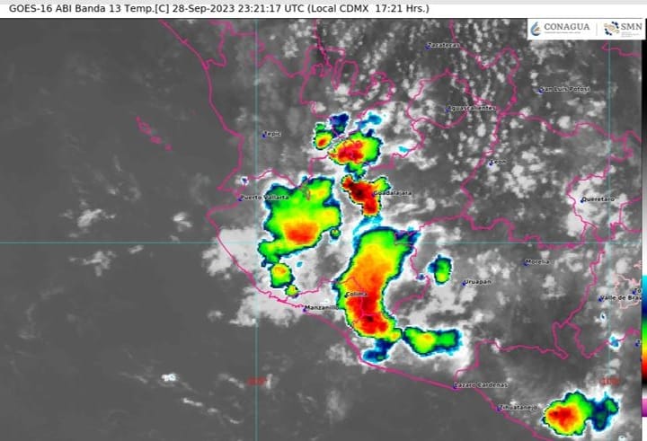 El organismo de la Comisión Nacional del Agua (Conagua) pronostica para este viernes 29 de septiembre lluvias muy fuertes con puntuales intensas de hasta 150 milímetros en algunos municipios de Colima, con posibles descargas eléctricas, encharcamientos, deslaves, inundaciones y crecimiento en los niveles de ríos y arroyos.