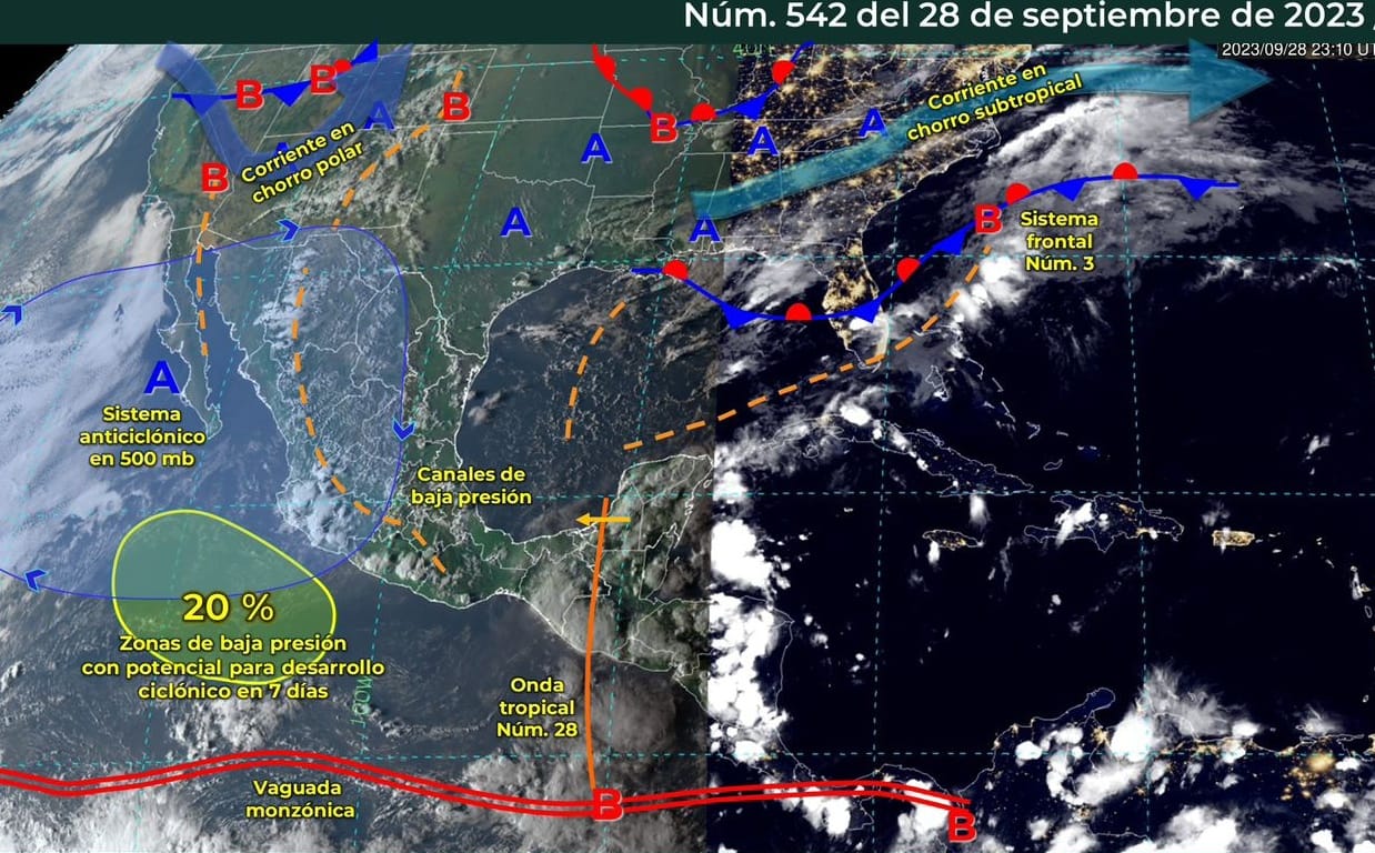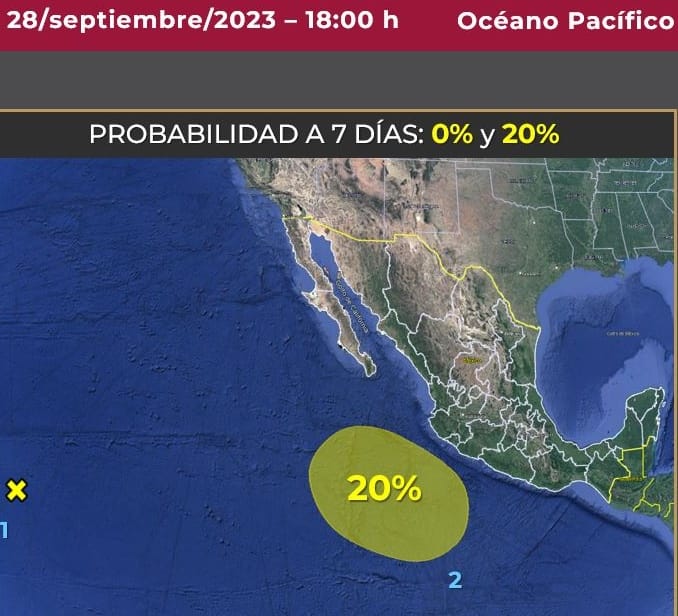 El Servicio Meteorológico Nacional (SMN), fuente oficial del Gobierno de México, informó que se prevé la formación de una zona de baja presión frente a las costas de Colima y Jalisco, que presenta 20% de probabilidad de desarrollo ciclónico en los próximos siete días.