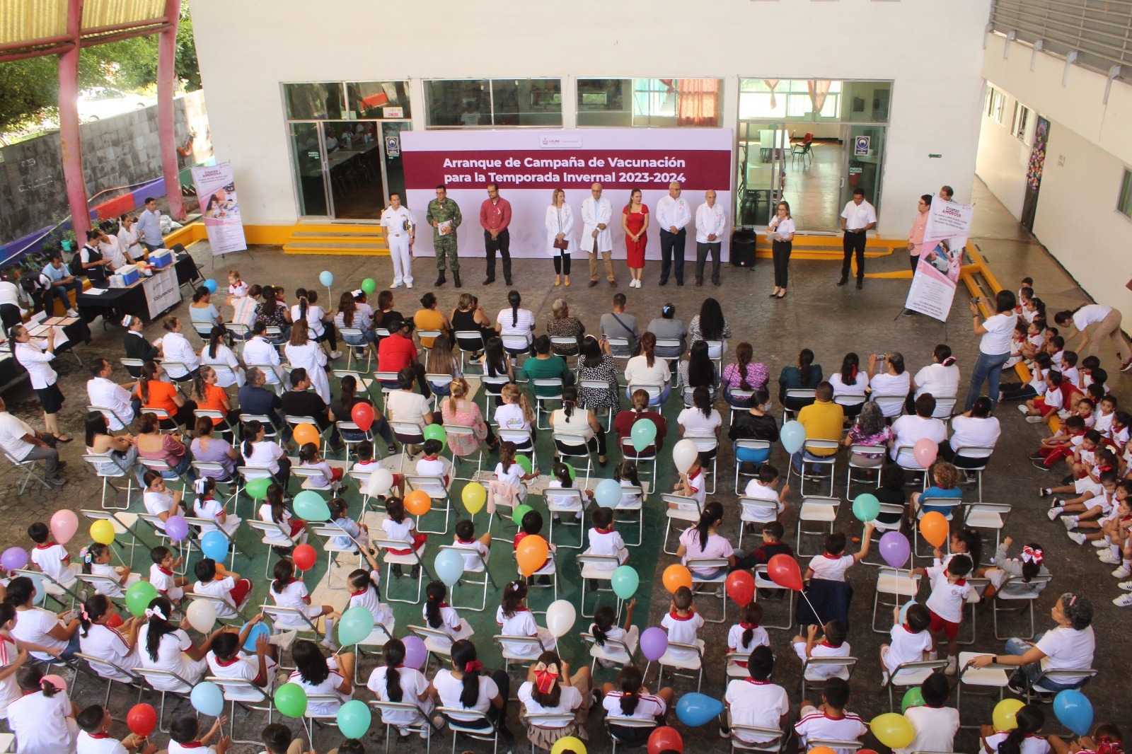 También asistieron el titular del Órgano de Operación Administrativa Desconcentrada del IMSS, Édgar Javán Vargas Salazar, y el titular de la Coordinación Estatal del IMSS-Bienestar, Armando de la Mora Morfín, así como representantes de la Secretaría del Bienestar, ISSSTE, VI Región Naval y 20 Zona Militar, la directora general de los Centros de Desarrollo Infantil Tierra y Libertad, Norma Raquel Torres Pinto, dio la bienvenida y destacó los beneficios de la vacuna para reducir el impacto de las enfermedades y salvar vidas.
