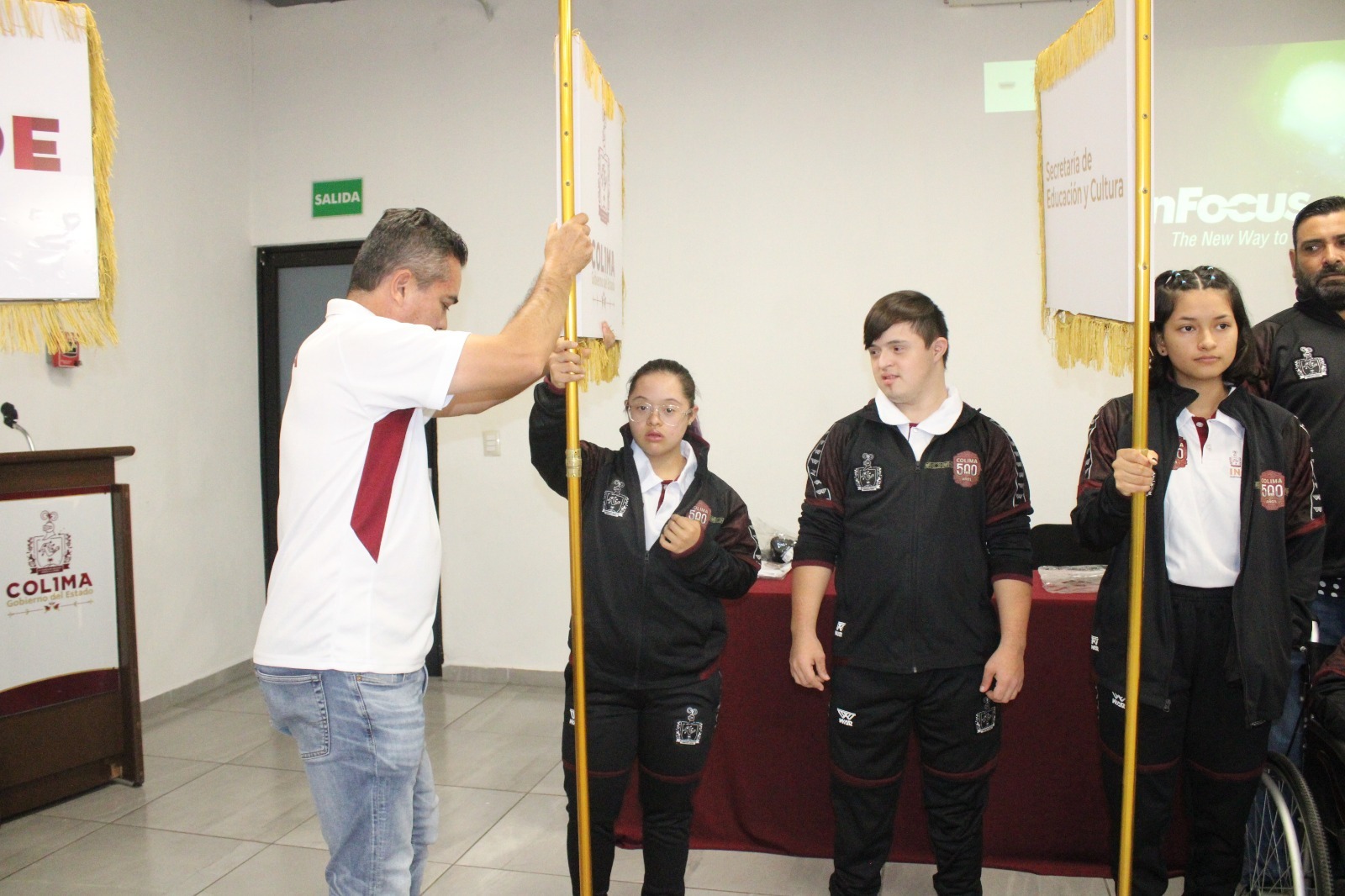 Ante familiares de las y los deportistas, Rodríguez Alvarado abanderó a la atleta Karol Mariana Segoviano con el estandarte de Gobierno del Estado; a Yaretzi Janeth Cristóbal Santana con el de la Secretaría de Educación y Cultura; a Diego Antonio Orellana Gutiérrez con el de la Comisión Nacional de Cultura Física y Deporte (Conade), así como al entrenador Chrystyan Armando Martínez Pedraza con el del Incode.