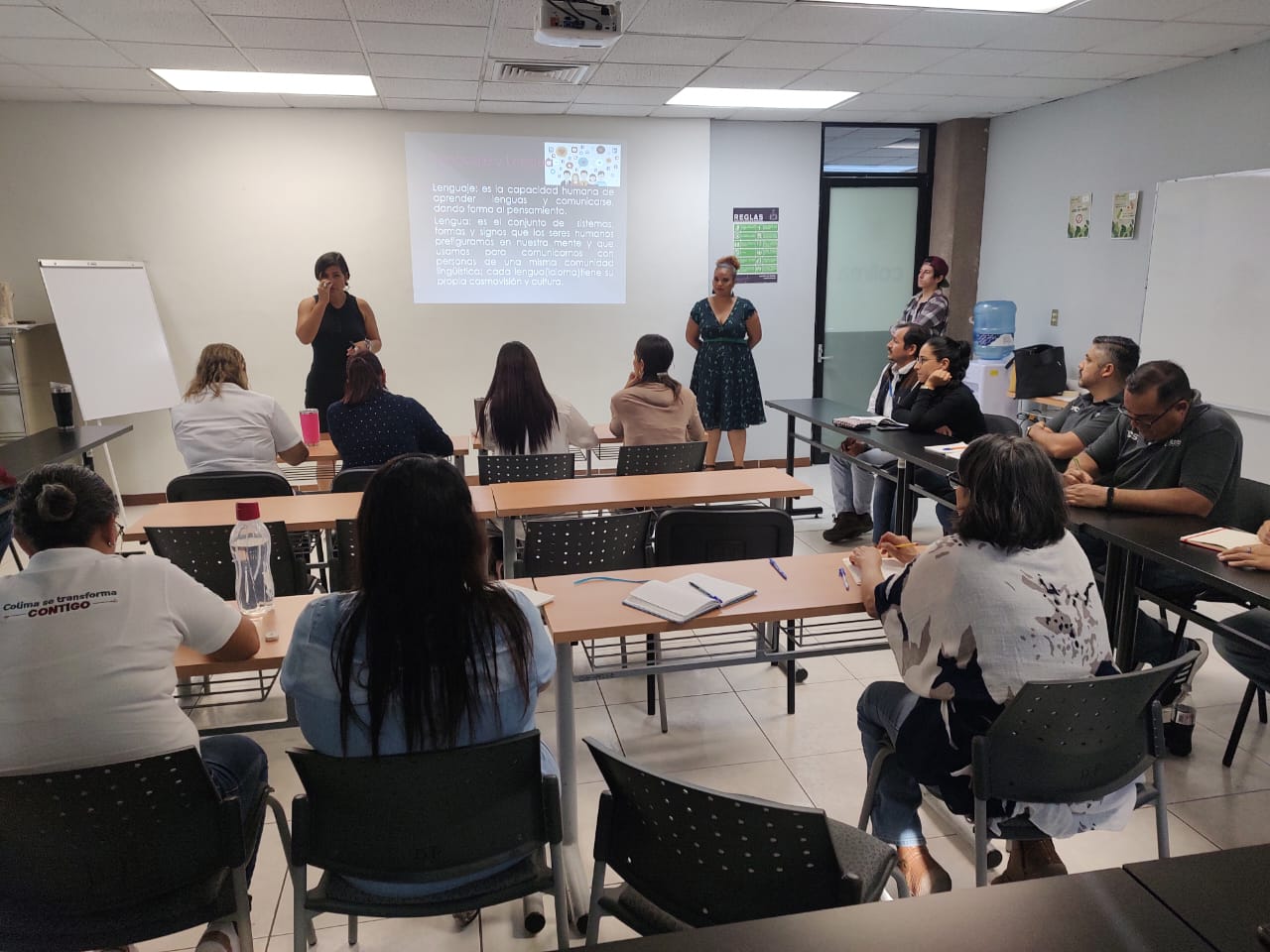 El curso es impartido por las capacitadoras Areli Martínez, quien es persona sorda y Paola García, intérprete de Lengua de Señas Mexicana, quienes forman parte del Instituto Colimense para la Discapacidad.