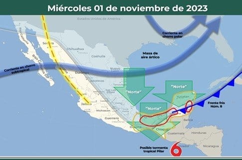 En cuanto a temperaturas máximas, el SMN prevé que, este miércoles 1 de noviembre Colima podría alcanzar hasta 35 grados Celsius durante las horas de mayor radiación solar, al igual que Jalisco, Michoacán, Guerrero, Oaxaca, Baja California Sur, Sonora, Sinaloa, Nayarit, Campeche y Yucatán.