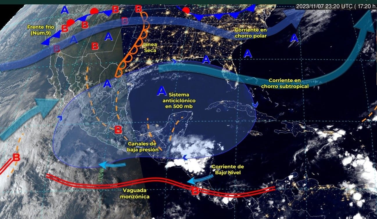El Servicio Meteorológico Nacional (SMN) prevé que, para este lunes 23 de octubre, en el estado de Colima prevalezcan temperaturas de hasta 35 grados Celsius, al igual que en Baja California Sur, Sonora, Nayarit, Jalisco, Michoacán, Guerrero, Oaxaca, Chiapas, San Luis Potosí, Veracruz y Tabasco.