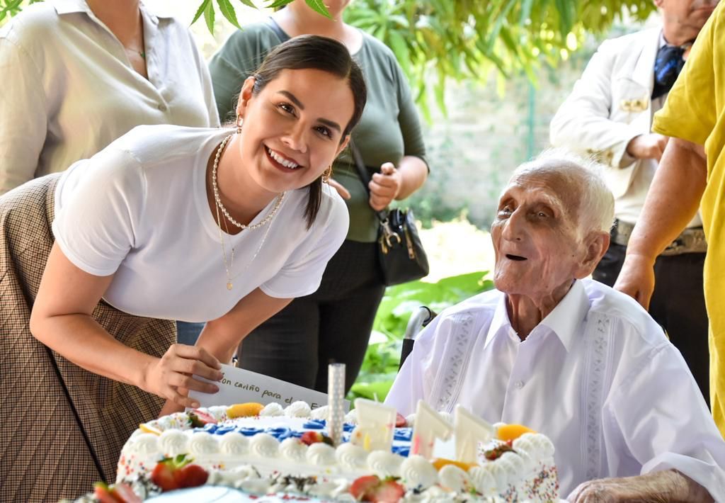 Rosi Bayardo, enlace del Gobierno de Colima en Manzanillo le acompañó en la celebración para hacerle una felicitación de parte de la gobernadora Indira Vizcaíno y hacerle un obsequio: su acta de nacimiento.