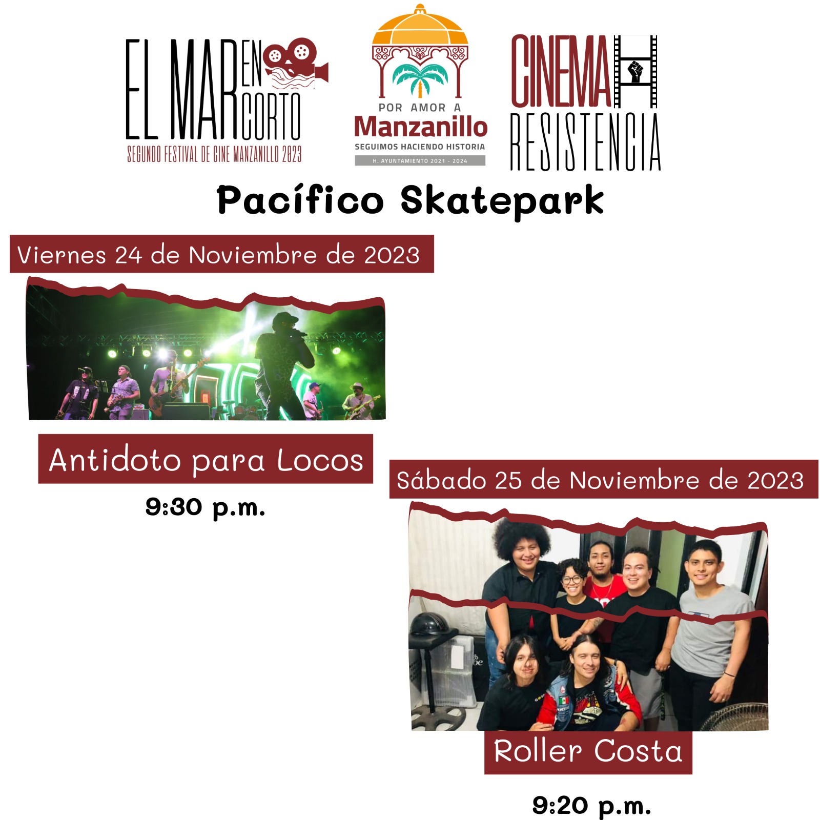 Para seguir impulsando la creación de eventos que motiven la sana convivencia y además la activación física, por instrucciones de la presidenta, Griselda Martínez este viernes y sábado 24 y 25 de noviembre de 2023, el Ayuntamiento de Manzanillo, presentará, en el Festival de Cine, “El mar en corto”, el Cinema Resistencia, el cual estará ubicado en el Pacífico Skatepark; ahí, además de cortometrajes, largometrajes y presentaciones musicales en vivo, se realizará un torneo de skateboarding.