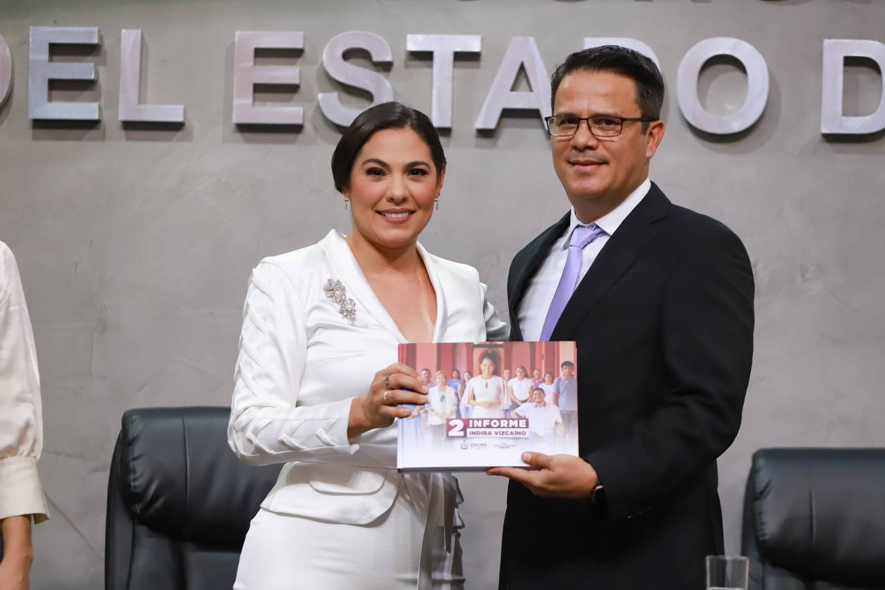 Al entregar su Segundo Informe de Gobierno al Congreso del Estado de Colima, en presencia de la secretaria de Gobernación (Segob), Luisa María Alcalde Luján, en representación del presidente Andrés Manuel López Obrador, la gobernadora Indira Vizcaíno Silva dijo que todas las áreas de la administración que encabeza, trabajan en la construcción de una Colima más justa y equitativa a través programas como ColiBecas, #OperaciónSaludColima, #ObrasQueTransforman y las acciones en seguridad, e hizo un llamado para continuar con la transformación de nuestra entidad.