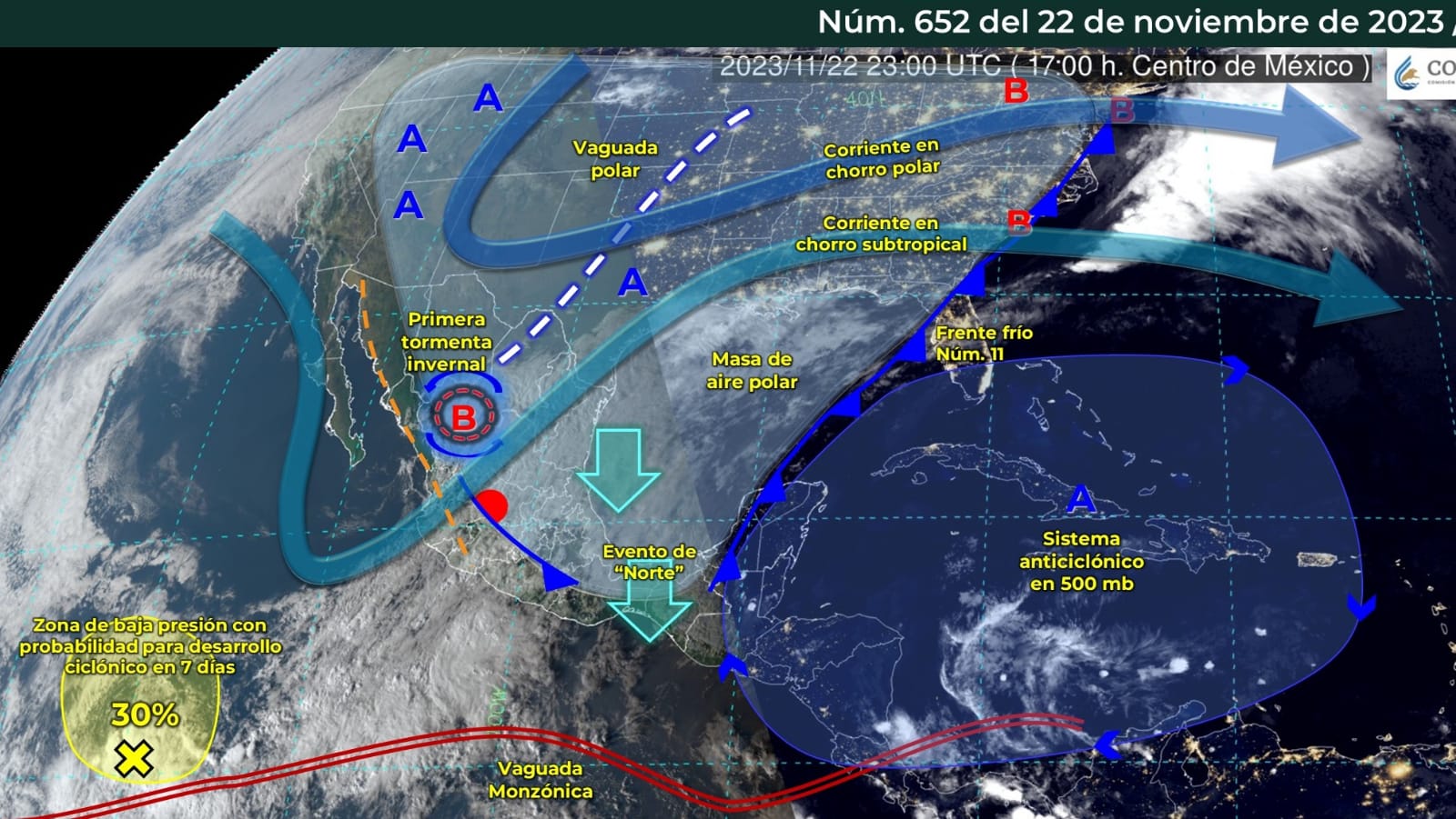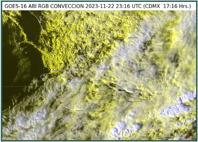 Respecto a las temperaturas, el SMN estima que, para este jueves 23 de noviembre, el estado de Colima alcanzará registros máximos de entre 30 y 35 grados Celsius, al igual que en Jalisco, Michoacán, Guerrero, Oaxaca (costa), Chiapas (costa), Campeche, Yucatán y Quintana Roo.