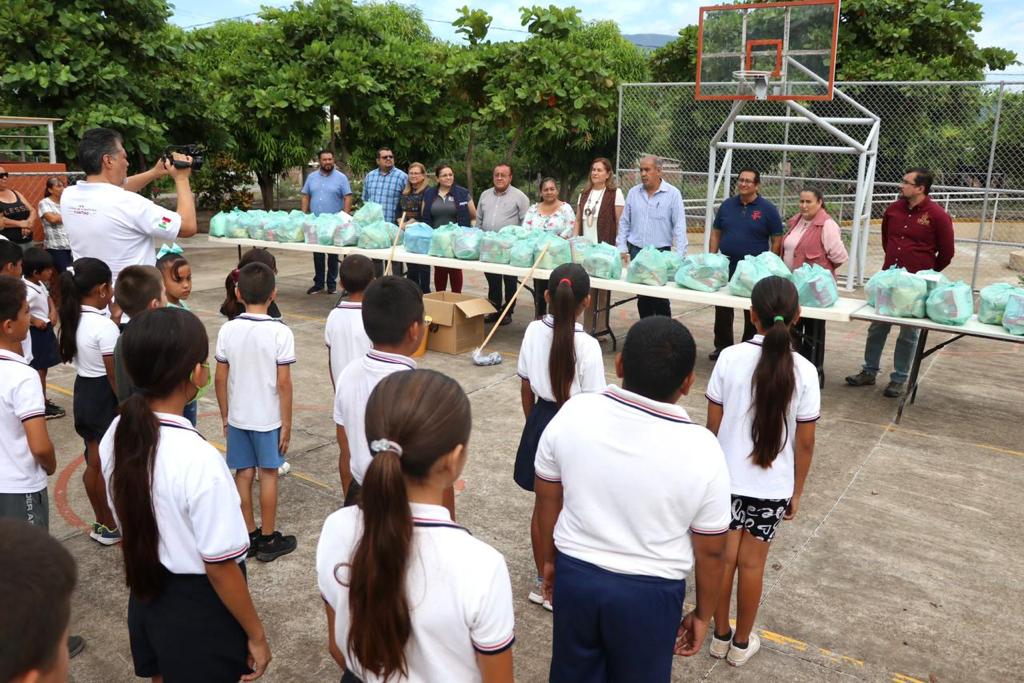 El titular de Educación y Cultura, en compañía de autoridades educativas, destacó el trabajo y la iniciativa por parte del Voluntariado de la Secretaría de Educación y Cultura que encabeza María Guadalupe Galindo Gómez, así como la colaboración de las y los trabajadores de la dependencia educativa y de diversos organismos públicos descentralizados (OPD’s), al sumarse con gran entusiasmo a esta campaña con la cual se beneficiaron alumnas y alumnos del Jardín de Niños “Carlos Vizcaíno Vázquez”, de la Escuela Primaria “Emilio Carranza” y estudiantes de la Telesecundaria Estatal “Crispín Ríos Rivera”.