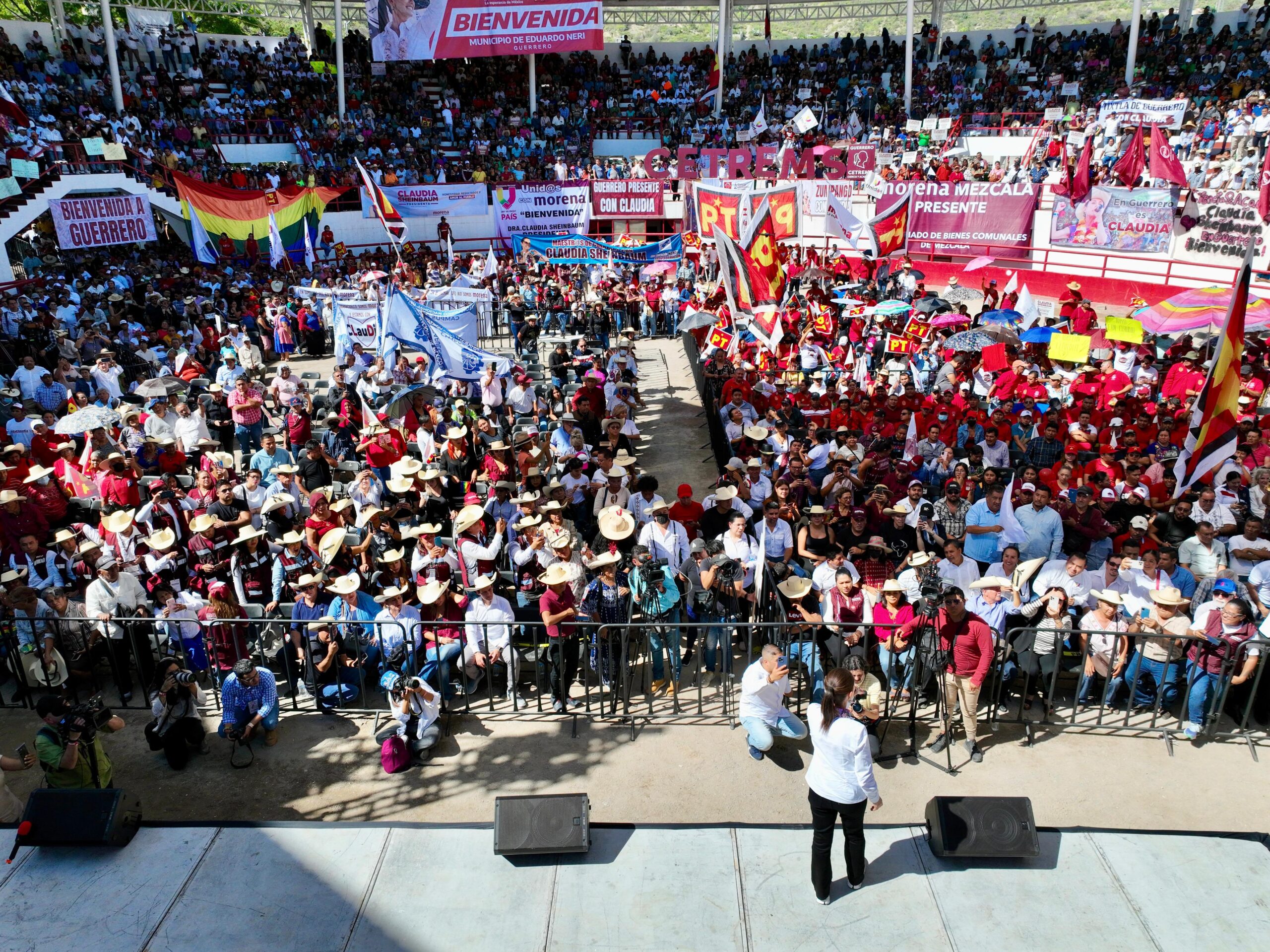 Eduardo Neri, Guerrero, a 5 de diciembre de 2023.- ’’Hay recursos, lo que no hay es corrupción, por eso Acapulco va a estar en pie, por el pueblo de Acapulco, por lo que representan las y los guerrerenses, y por el apoyo que está dando el presidente de la República’’, destacó Claudia Sheinbaum Pardo, precandidata de la coalición ‘’Sigamos Haciendo Historia’’ ante la militancia de Guerrero desde el municipio de Eduardo Neri.