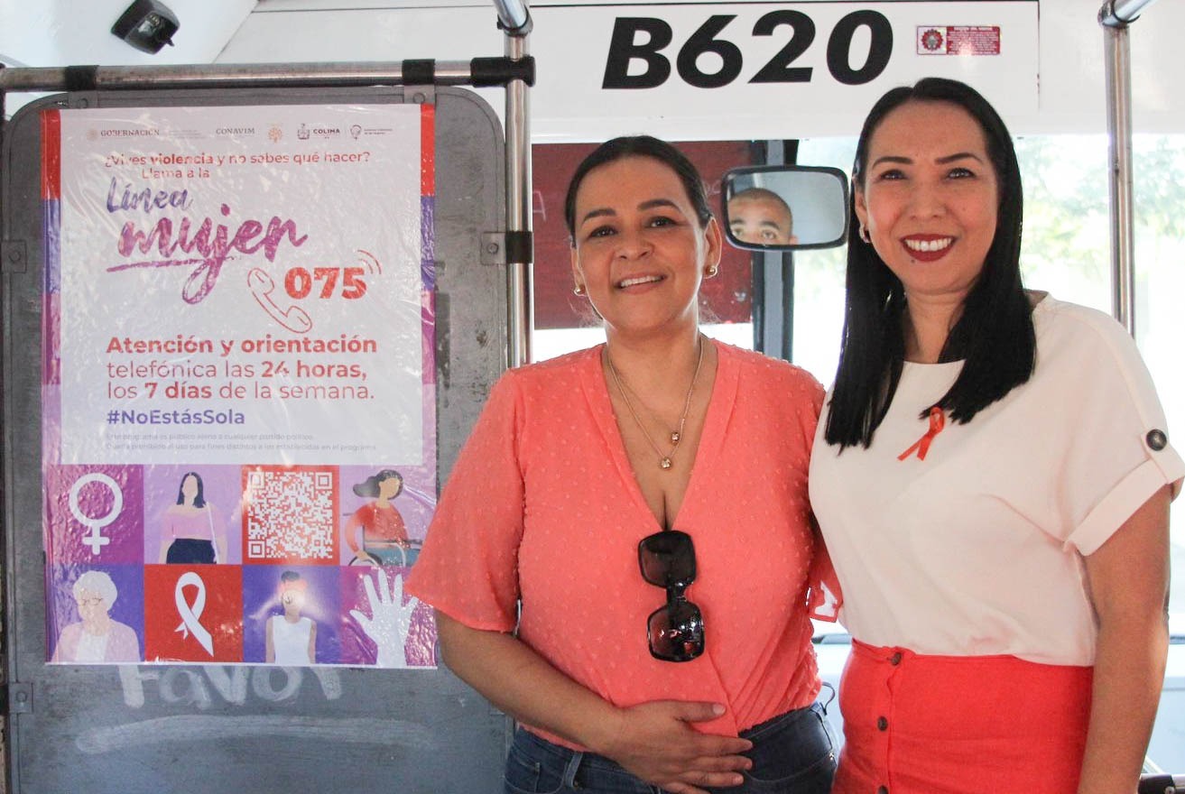 Este viernes, integrantes del Instituto Colimense de las Mujeres (ICM), en colaboración con la Subsecretaría de Movilidad (Subsemov) del Gobierno del Estado de Colima, inició la estrategia de difusión en el transporte público de unidades de atención para las mujeres, que incluye la colocación de carteles en vehículos del transporte urbano colectivo de la capital, para promover el acceso de las mujeres colimenses a servicios de atención y prevención de las violencias.