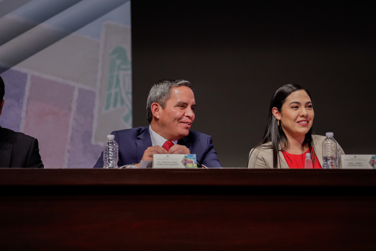 Acompañaron al rector en el presídium, además de la gobernadora, Joel Nino, secretario general de la institución; Armando Reyna Magaña, presidente de la mesa directiva del Congreso del Estado; Luis Enrique Zamorano Manríquez, secretario general del SUTUC; Camilo Alejandro García Morales, presidente de la FEC y Herik Germán Valles por la ANUIES.