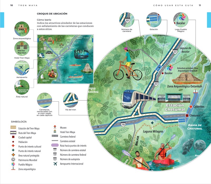 Con esta compañera de viaje, por medio de infografías, mapas, rutas, fotografías y textos, las y los paseantes pueden conocer el patrimonio histórico y la cultura maya del sureste mexicano.