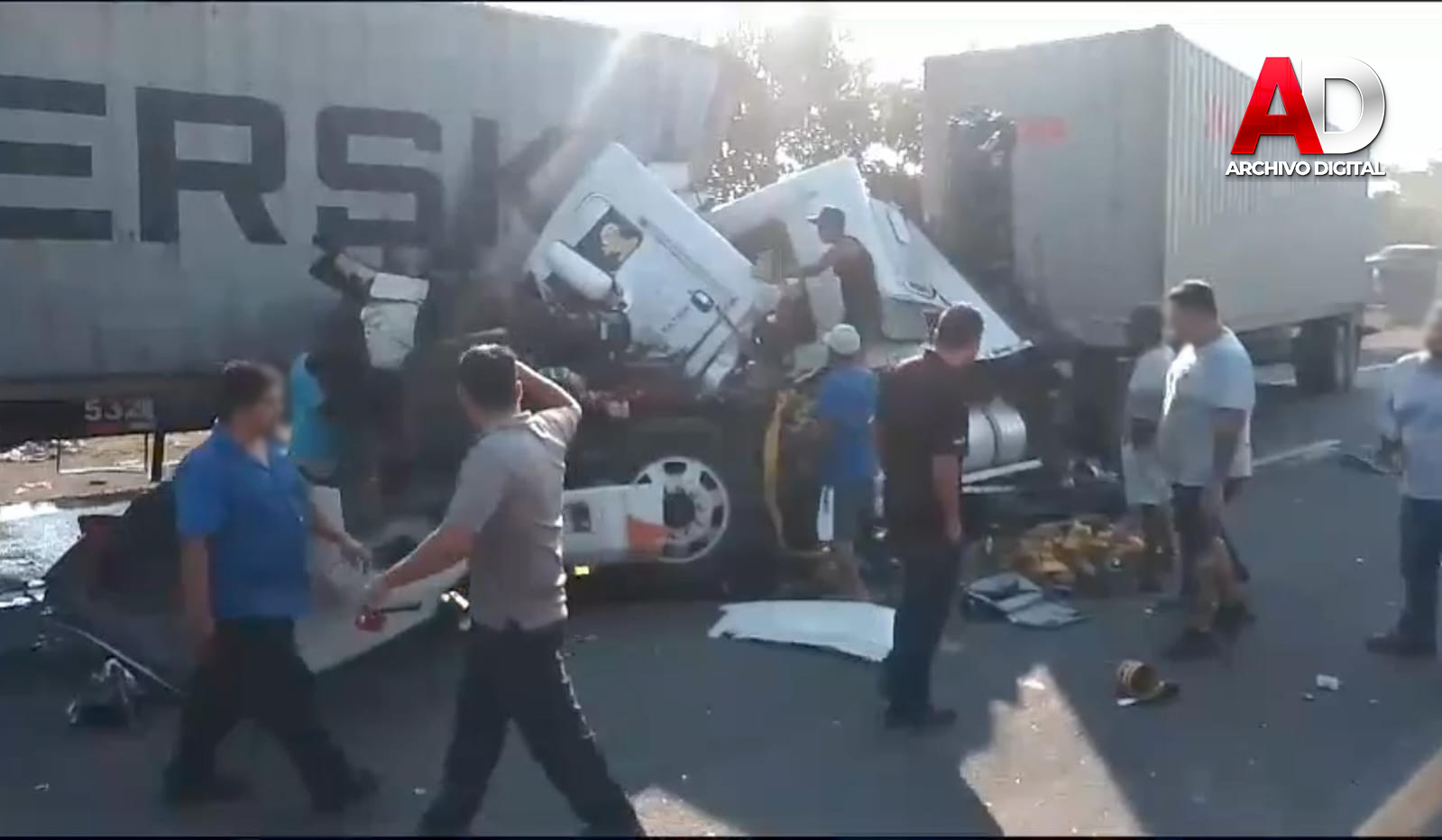 En el incidente se vieron involucrados dos tráileres, dejando un saldo de una persona sin vida y otra lesionada, así como daños materiales.
