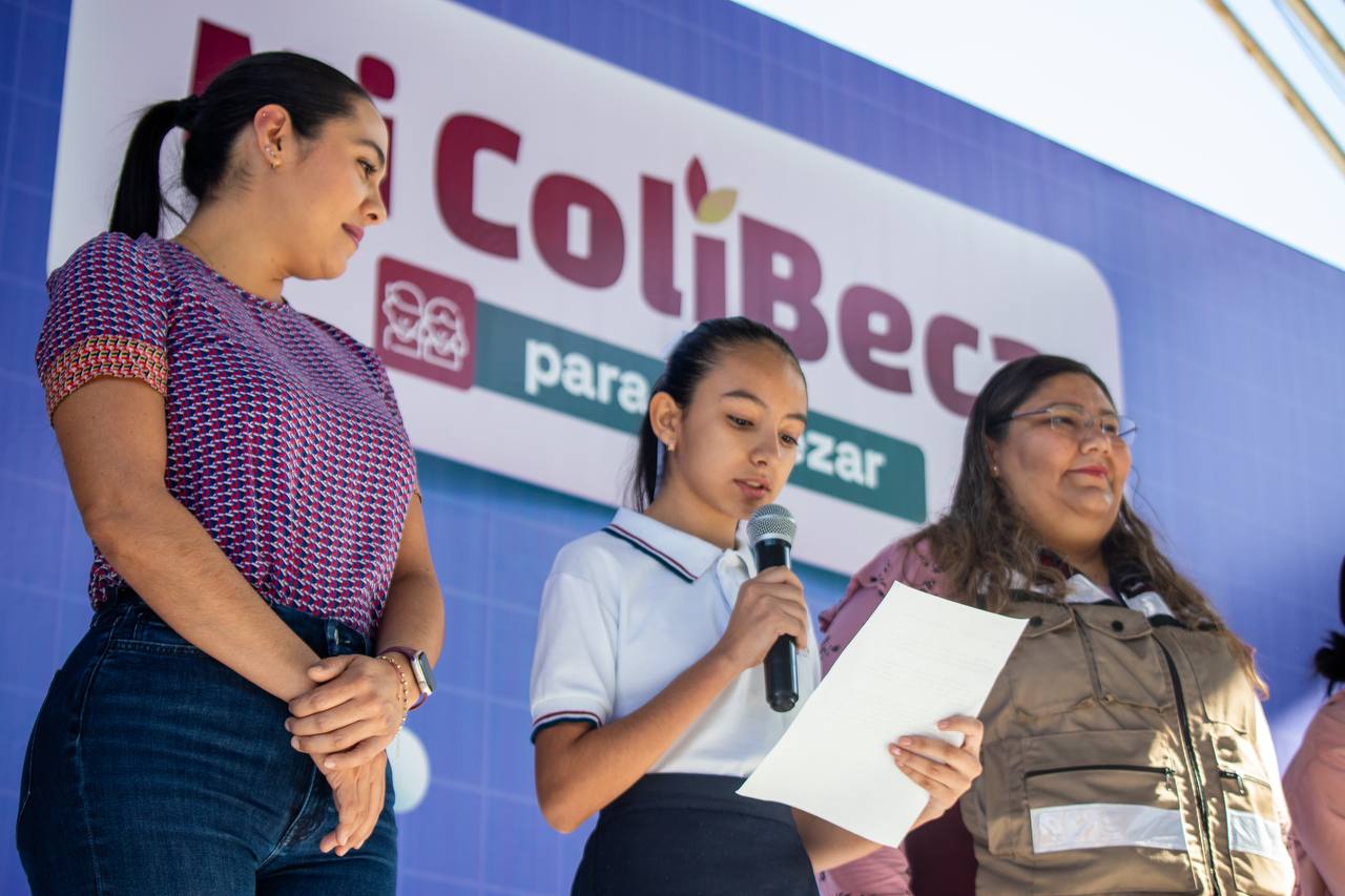 Durante el primero de los tres eventos este sábado en la Feria de Colima, la mandataria recordó que ColiBecas es una estrategia del Gobierno del Estado que se diseñó para garantizar que todas las niñas y niños tengan las mismas oportunidades y herramientas para ir a la escuela y que se enfoquen a alcanzar y cumplir sus sueños; gracias a este programa se ha dotado de uniformes escolares gratuitos a estudiantes de preescolar, primaria y secundaria; mochilas y útiles en kínder y primaria; computadoras gratuitas en secundaria y en nivel profesional.
