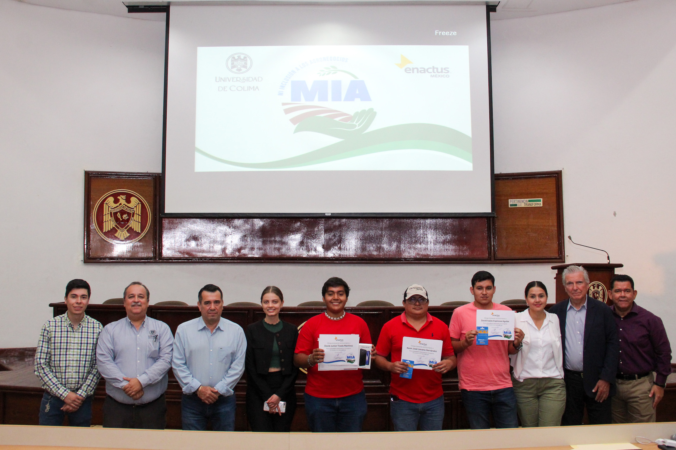 En el evento también estuvieron Carlos Alberto Montes Carbajal, delegado de Tecomán, en representación del eector Christian Jorge Torres Ortiz; Elvira Silva Jiménez, coordinadora académica del Programa Ingeniero Agrónomo; Gema Padilla Sandoval, líder de Proyectos Estratégicos de ENACTUS MX, así como Alder Arturo Zamora, presidente de la sociedad de alumnos de la FCBA.