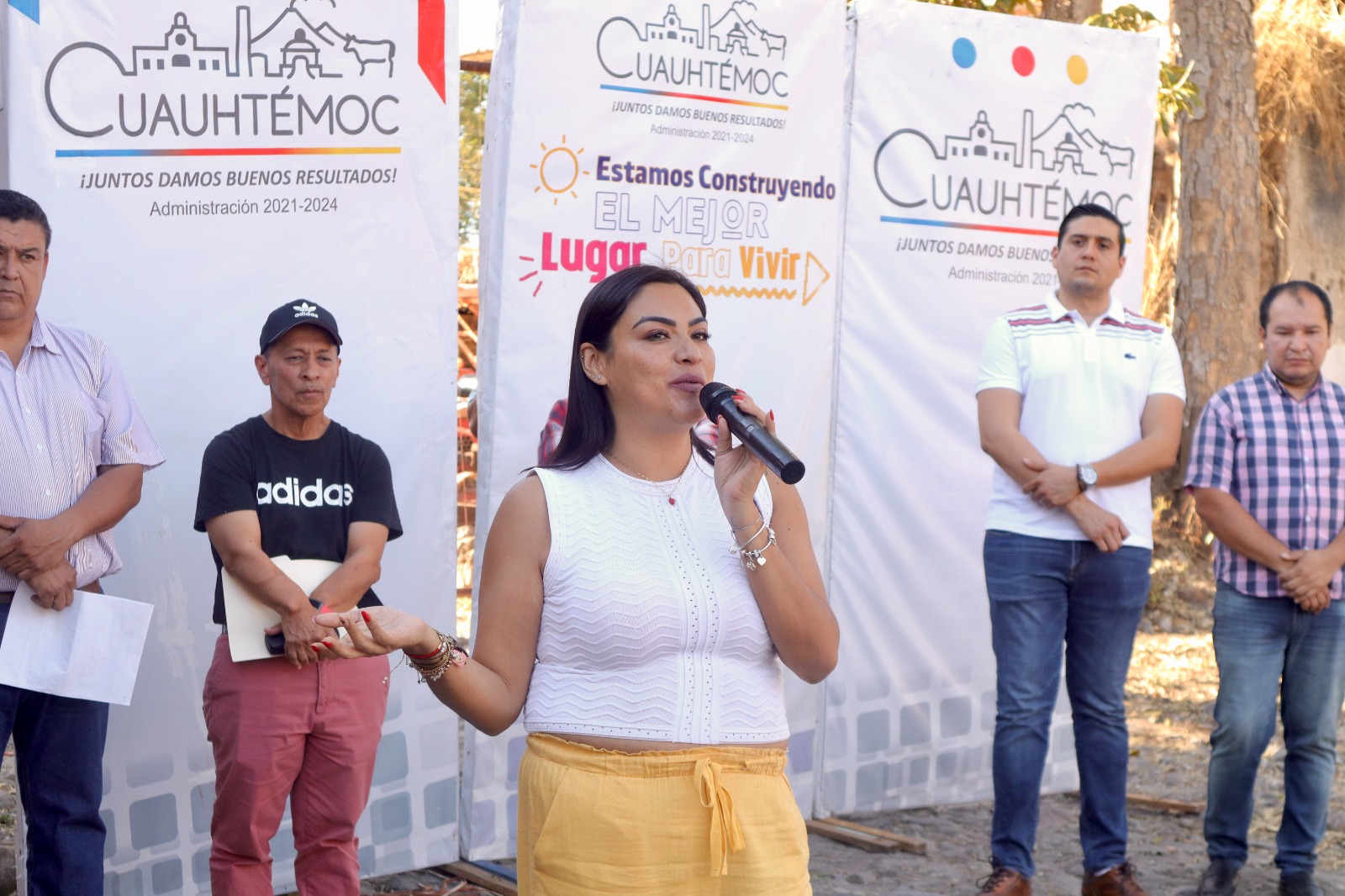 La presidenta municipal de Cuauhtémoc, Gabriela Mejía Martínez, dio el banderazo de inicio a la rehabilitación integral de la Calle Jazmín, en la comunidad de San Joaquín, que contempla la renovación de las redes de agua y drenaje, descargas y tomas domiciliarias, así como la pavimentación.
