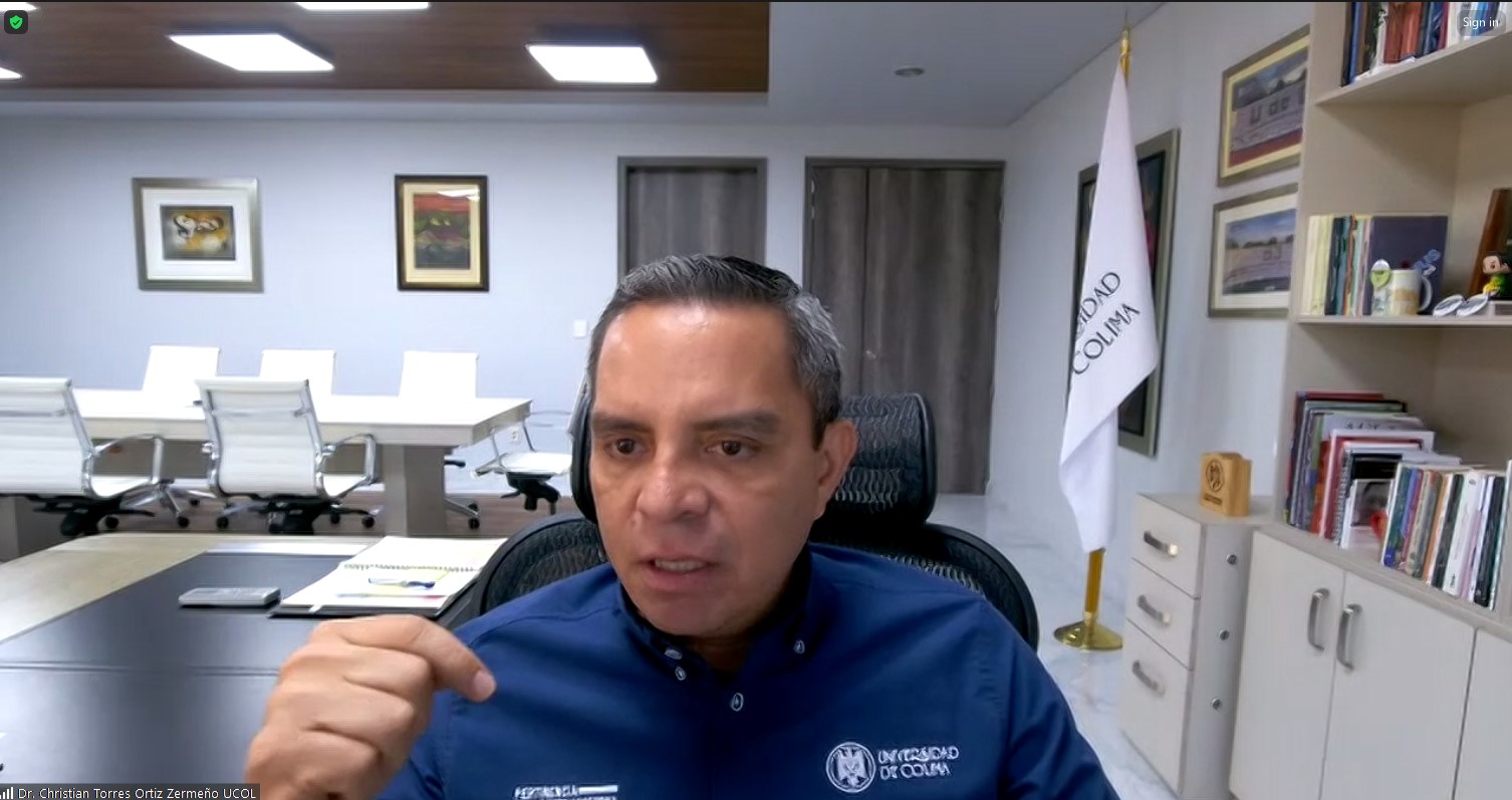 Christian Torres Ortiz Zermeño, rector de la Universidad de Colima, mantuvo una reunión virtual con los directores de planteles de Nivel Superior y coordinadores de Posgrado registrados en el Sistema Nacional de Posgrado (SNP), con la finalidad de poder atender mejor las demandas de los y las aspirantes al proceso de admisión 2024, debido al cambio de lineamientos del Conahcyt, sobre todo para otorgar becas de posgrado.