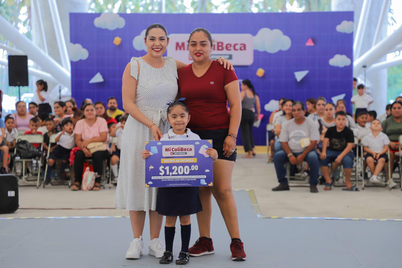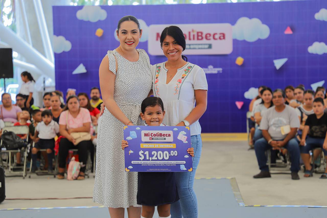 Indira Vizcaíno recordó que, a nivel estatal, se invierten más de 130 millones de pesos en ‘Mi ColiBeca para Empezar’, en beneficio de más de 60 mil estudiantes de los diez municipios, quienes reciben 400 pesos bimestrales, durante cinco bimestres, y que en esta primera etapa es lo correspondiente a los primeros tres bimestres; es decir, mil 200 pesos por estudiante.