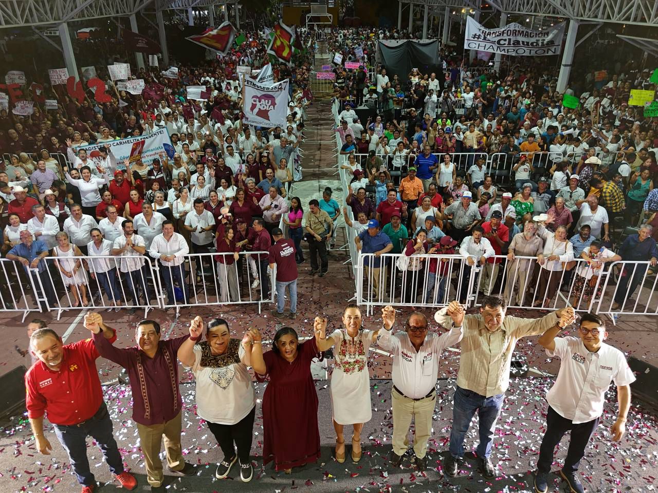En el evento también estuvieron presentes María Martina Kantun Can, candidata al Senado por Campeche; Gabriela del Carmen Basto González, candidata a Diputada Federal por Campeche; Juan Hugo de la Rosa, responsable de Circunscripción; Erick Reyes León, presidente estatal de Morena; Antonio Gómez Saucedo, presidente estatal del PT; y Andrés Fernández del Valle, dirigente estatal del PVEM.