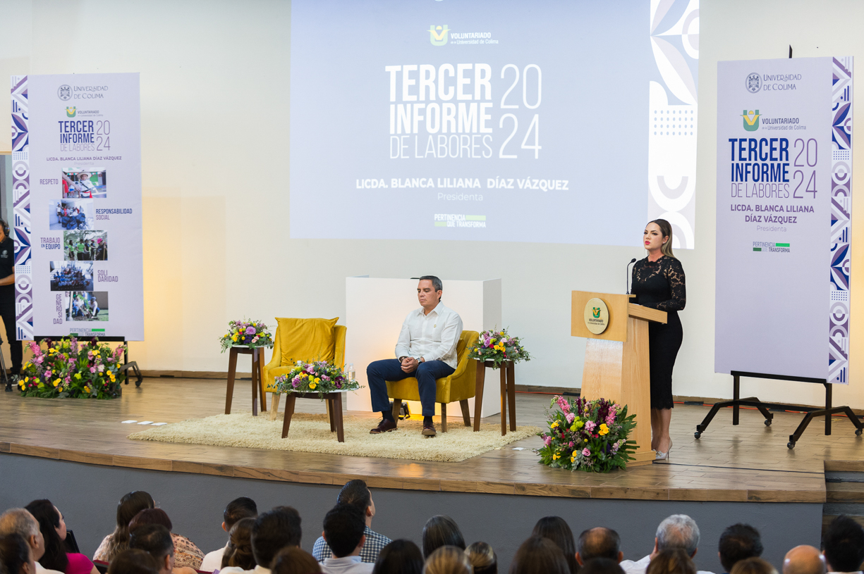 En acto realizado este jueves por la tarde, Blanca Liliana Díaz Vázquez, presidenta del Voluntariado de la Universidad de Colima, rindió su tercer informe de labores al frente de esta dependencia. En él, dio a conocer las acciones que realizan en beneficio no sólo de los sectores vulnerables, sino en temas de inclusión, acciones a favor del medio ambiente y los proyectos que realizan con empresas privadas y del sector social.
