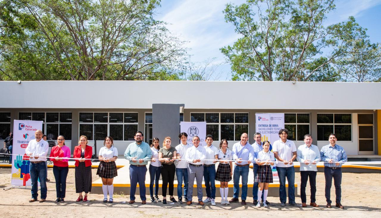 En el marco de los 50 años de Peña Colorada, la empresa entregó la segunda etapa de la reconversión del Bachillerato 11 de la Universidad de Colima, en Minatitlán, para que albergue la carrera de Técnico en Electromecánico.