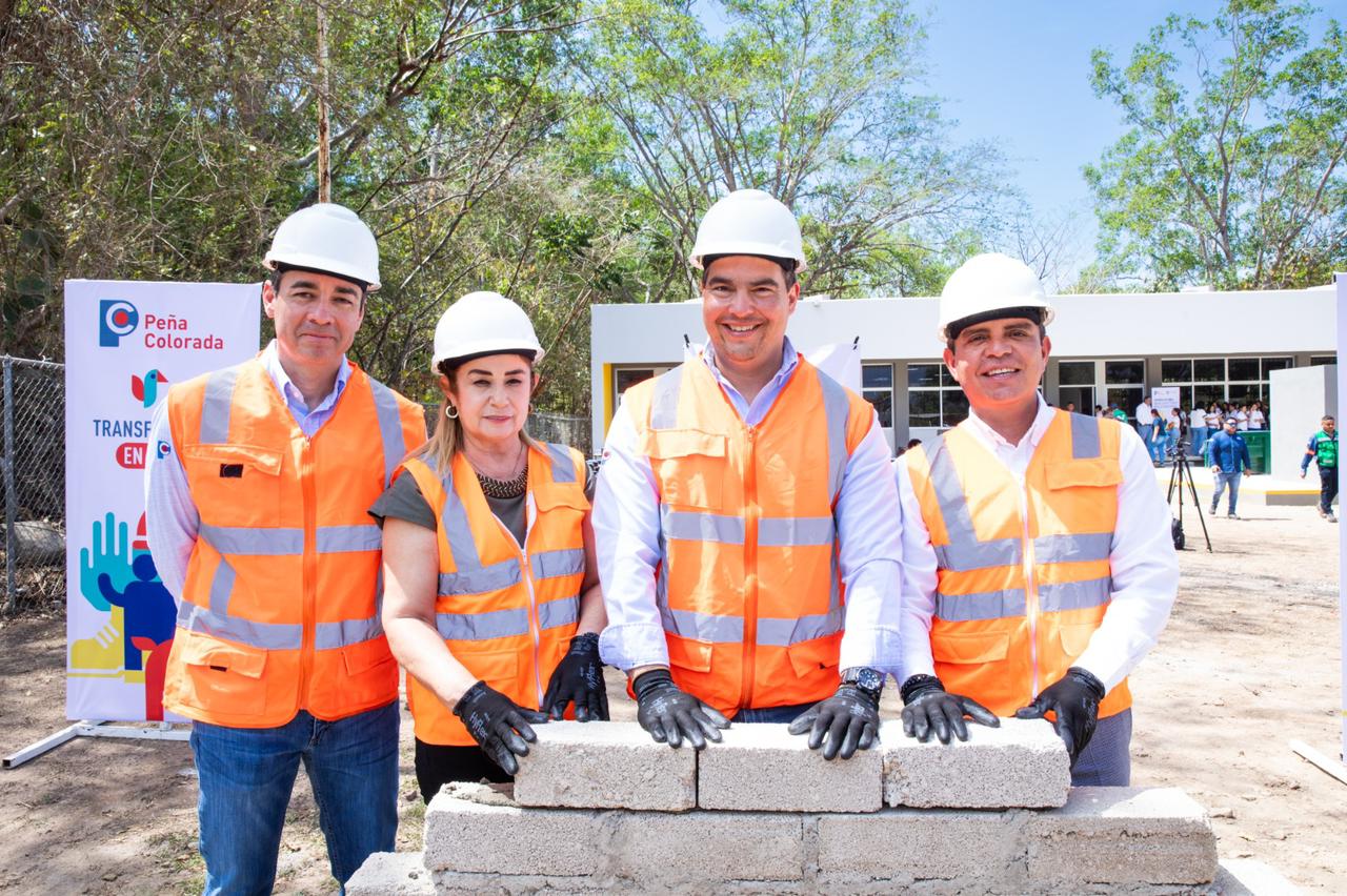 Pero el compromiso de Peña Colorada sigue, también se colocó la primera piedra de la tercera etapa, en la que se construirán aulas taller de electricidad, mecánica y soldadura.
