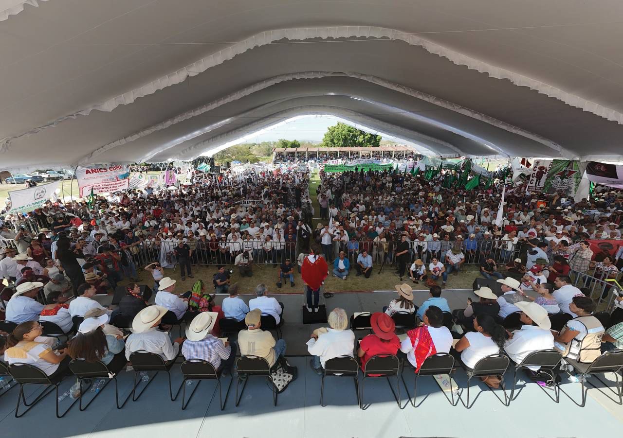 “Mi compromiso con ustedes es seguir trabajando para seguir haciendo un México en donde la soberanía alimentaria tome en cuenta a los campesinos y las campesinas, que sigamos con justicia agraria, que sigamos trabajando para hacer de México un país donde no haya pobreza, no haya desigualdades, un país en donde se tome en cuenta siempre al más humilde y un gobierno que mire siempre a su pueblo, que no se olvide porque venimos desde hace muchos años luchando con el movimiento y el compromiso es que llevamos por el corazón, en el pensamiento, en la historia los principios de nuestro movimiento: nosotros no mentimos, no robamos y nosotros no vamos a traicionar al pueblo de México”, aseveró.