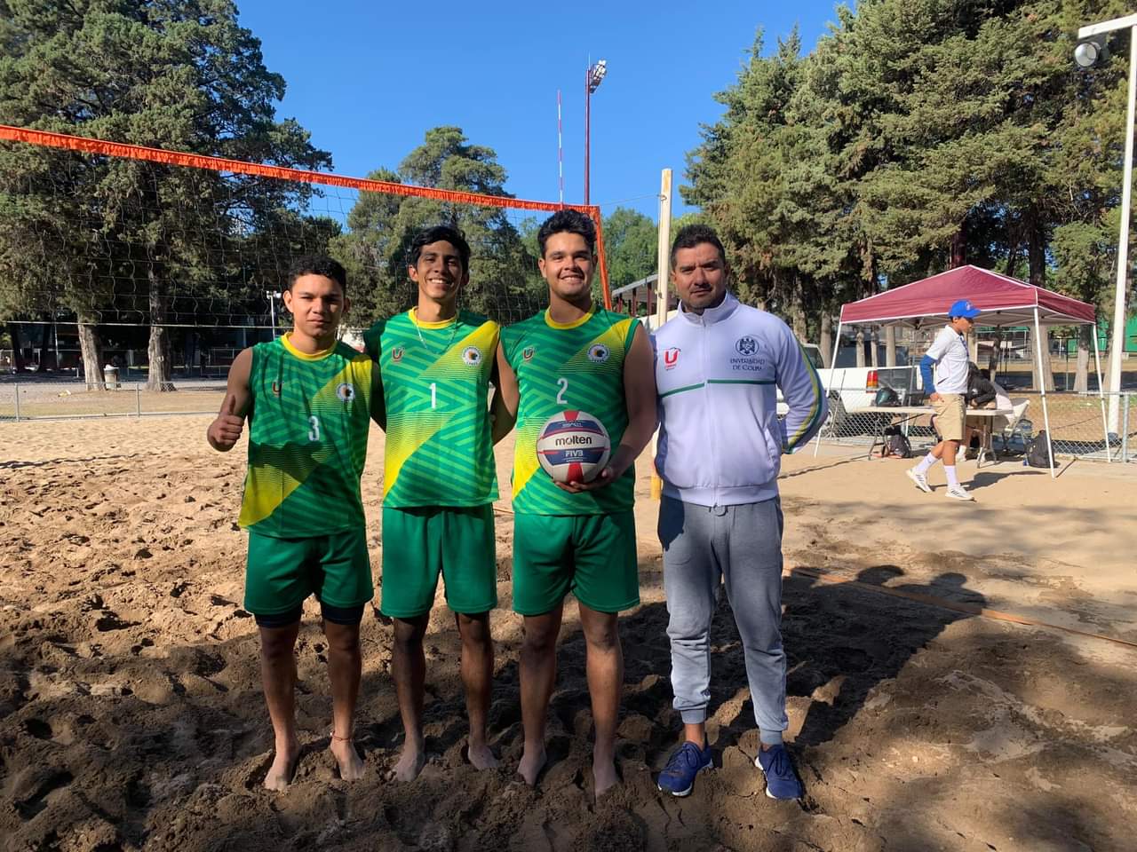 En el voleibol de playa los loros, que terminaron invictos durante toda la competencia, se enfrentaron por la mañana de hoy (10 de abríl) a la tripleta de la Universidad Michoacana de San Nicolás de Hidalgo (UMSNH) a quienes vencieron en 2 sets con parciales 21-16 y 21-10 para así lograr su pase a la fase nacional. La tripleta lora está conformada por Emmanuel Negrete Gutíerrez, Jesús Padilla Ayala y Francisco Gómez Figueroa comandados por su entrenador Salvador Cedeño Grijalva.