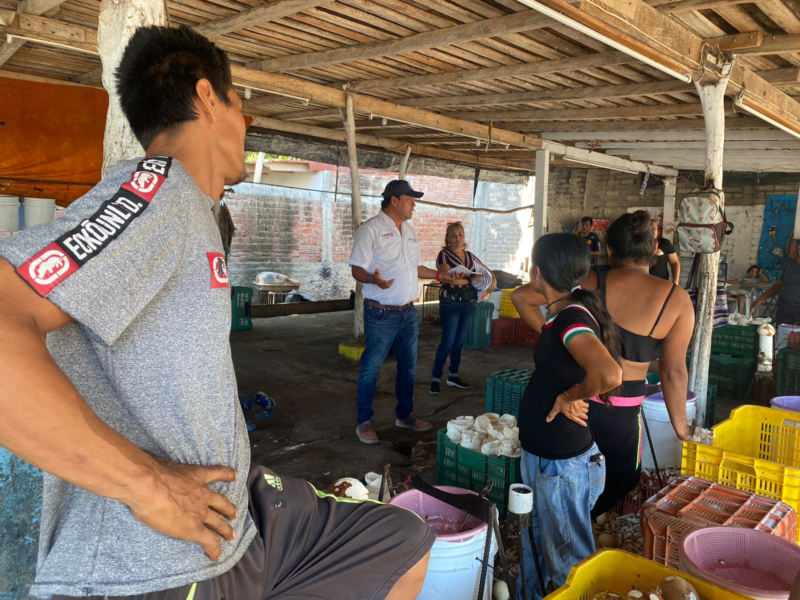 Gama Espíndola dialogó esta mañana con trabajadores de peladeros de coco los cuales le expresaron la problemática y deficiencia en el servicio de salud y los altos gastos que se generan al acudir a recibir atención médica con particular ya que ya no existe el programa del seguro popular, que anteriormente les cubría algunas enfermedades y atenciones médicas.