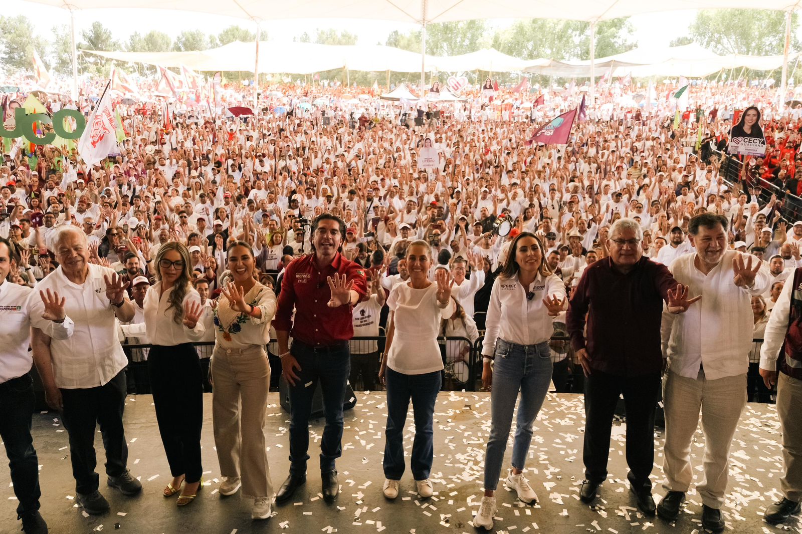 Saltillo, Coahuila a 23 de mayo de 2024.- Lograr que el 2 de junio la Cuarta Transformación llegue a Coahuila de la mano de todos sus candidatos, fue el llamado que hizo Claudia Sheinbaum Pardo, candidata a la Presidencia de México por la Coalición “Sigamos Haciendo Historia” (Morena-PT-PVEM) hizo ante el pueblo de Saltillo, donde aseguró que los habitantes de este estado se encuentran cansados de los gobiernos del PRI.