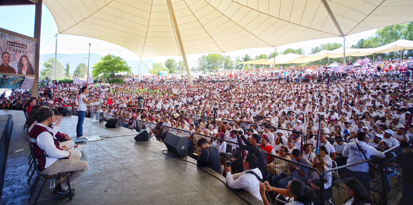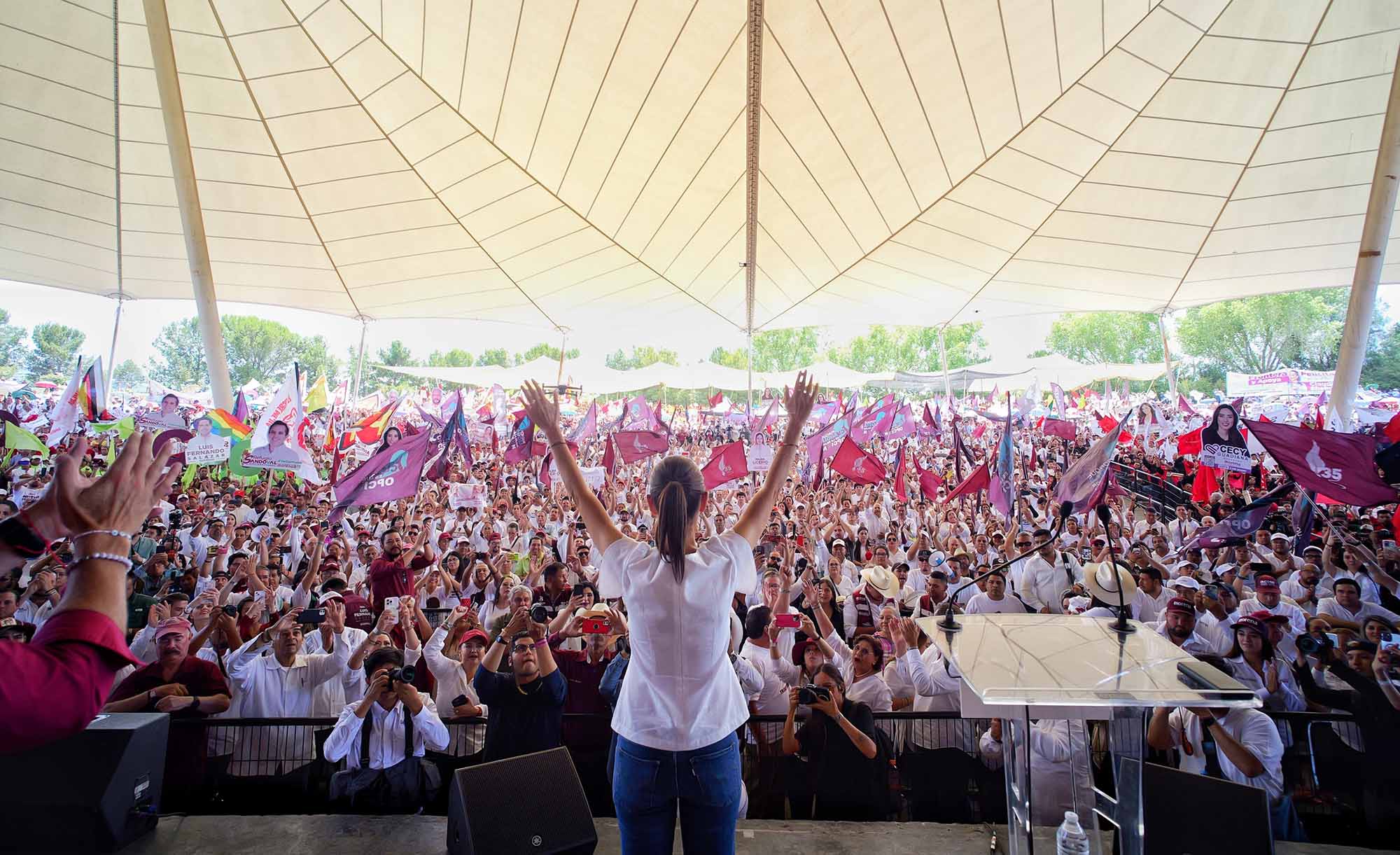 ’’Estamos aquí, acariciando la victoria, porque tenemos a la mejor mujer en la persona de la doctora Claudia Sheinbaum, que ha sabido, no solamente representar, sino defender lo que será garantizar la construcción del segundo piso de la transformación, que no es más ni menos que garantizar los derechos del pueblo’’, comentó.