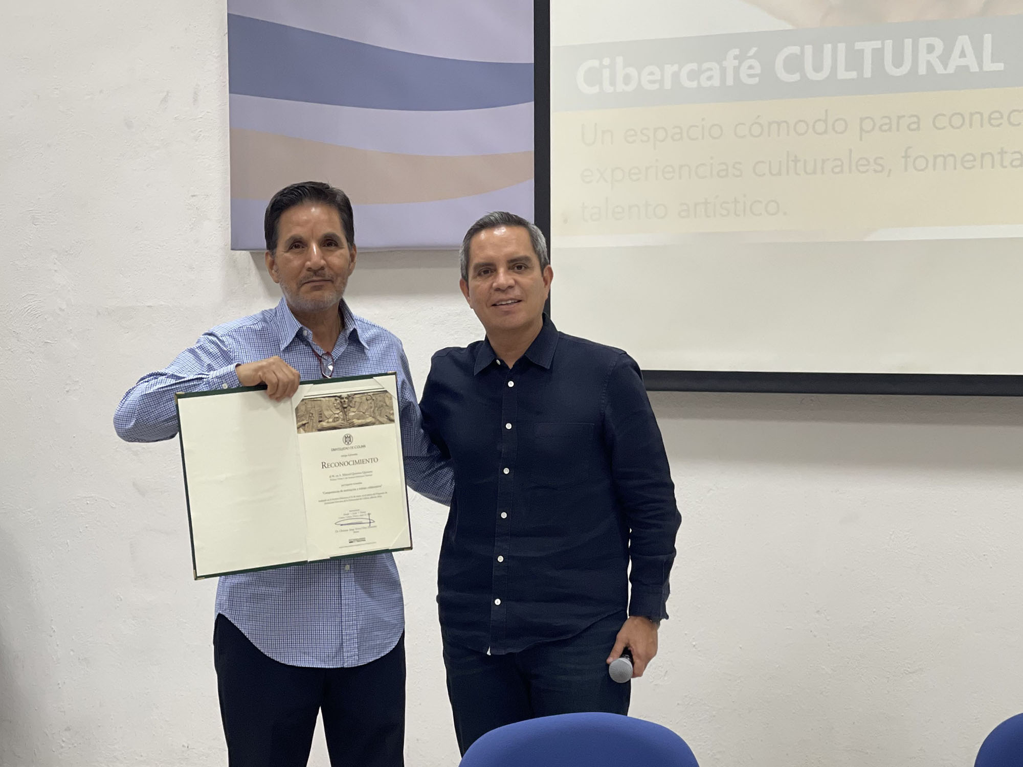 Al final, el rector Christian Torres Ortiz Zermeño le entregó un reconocimiento y le agradeció su contribución a este curso para directivos de la UdeC.
