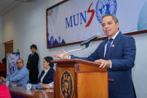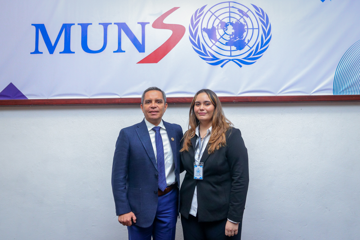 Christian Torres Ortiz comentó la importancia de aplicar, con este ejercicio, los conocimientos teóricos que ven en el aula, “y más por los estilos de aprendizaje que tienen los jóvenes hoy en día, por lo que esta recreación del Modelo de Naciones Unidas será de mucha utilidad en su etapa formativa”.